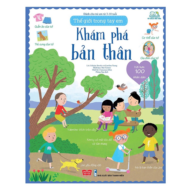 Công ty phát hành: Đinh Tị Tác giả: Nhiều tác giả Nhà xuất bản: NXB Thanh Niên Năm xuất bản: 2019 Số trang: 24 Giới thiệu sách: Thế giới trong tay em là bộ sách gồm 5 cuốn với những chủ đề: Khám phá bản thân, Bí mật về các loại thức ăn, Sự sinh trưởng của vạn vật, Thiên nhiên diệu kỳ và Vòng quanh Trái Đất. Mỗi cuốn sách là một mảnh ghép không thể thiếu giúp hoàn thiện vốn tri thức đầu đời và thỏa mãn trí tò mò của các bạn nhỏ về thế giới rộng lớn xung quanh. Từ việc biết chăm sóc bản thân và yêu thương gia đình, đến hiểu hơn về cách vạn vật phát triển và sự muôn màu của mẹ thiên nhiên, các bạn nhỏ sẽ có được nền tảng vững chắc để trở thành một công dân ưu tú trong tương lai. Hãy cùng lật mở cuốn sách và khám phá thế giới cùng những miếng dán hình đáng yêu nhé!