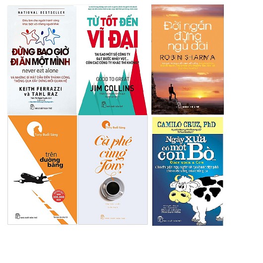 1/Tony Trên đường băng Những bài viết của Tony sinh động, thiết thực, hài hước và xuất phát từ cái tâm trong sáng của một người đi trước nhiều kinh nghiệm. Anh viết về thái độ với sự học và kiến thức nói chung, cách ứng phó với những trắc trở thử thách khi đi làm, cách sống hào sảng nghĩa tình văn minh…truyền cảm hứng cho các bạn trẻ sống hết mình, trọn vẹn từng phút giây. Công ty phát hành NXB Trẻ Tác giả Tony Buổi Sáng Ngày xuất bản 10-2017 Kích thước 13 x 20 cm Nhà xuất bản Nhà Xuất Bản Trẻ Loại bìa Bìa mềm Số trang 308 2/Cà Phê Cùng Tony Cà Phê Cùng Tony là tập hợp những bài viết PDF EPUB PRC AZW miễn phí đọc trên điện thoại – máy tính, ứng dụng đọc file epub, prc reader, azw reader của tác giả Tony Buổi Sáng. Đúng như tên gọi, mỗi bài nhẹ nhàng như một tách cà phê, mà bạn trẻ có thể nhận ra một chút gì của chính mình hay bạn bè mình trong đó: Từ chuyện lớn như định vị bản thân giữa bạn bè quốc tế, cho đến chuyện nhỏ như nên chú ý những phép tắc xã giao thông thường. Nếu như tập sách nhỏ này có thể khơi gợi trong lòng bạn đọc trẻ một cảm hứng tốt đẹp, như tách cà phê thơm vào đầu ngày nắng mới, thì đó là niềm vui lớn PDF EPUB PRC AZW miễn phí đọc trên điện thoại – máy tính, ứng dụng đọc file epub, prc reader, azw reader của tác giả Tony Buổi Sáng. Tony Buổi Sáng cũng là tác giả của Trên đường băng, tác phẩm hiện đã bán hơn 200.000 bản. Công ty phát hành NXB Trẻ Tác giả Tony Buổi Sáng Ngày xuất bản 11-2017 Kích thước 13 x 20 cm Nhà xuất bản Nhà Xuất Bản Trẻ Loại bìa Bìa mềm Số trang 268 3/Đừng Bao Giờ Đi Ăn Một Mình Bạn mong muốn đi tắt đón đầu? Bạn muốn vững bước đến thành công? Công thức để làm được điều này, theo lời bậc thầy về kết nối là Keith Ferrazzi, chính là phải biết làm quen với mọi người. Ferrazzi đã khám phá từ khi còn trẻ rằng điểm khác biệt của những người thành công rực rỡ chính là cách họ vận dụng quyền năng của những mối quan hệ – để mọi người cùng thắng. Công ty phát hành NXB Trẻ Tác giả Keith Ferrazzi, Tahl Raz Ngày xuất bản 09-2017 Kích thước 14.5 x 20.5 cm Nhà xuất bản Nhà Xuất Bản Trẻ Dịch Giả Trần Thị Ngân Tuyến Loại bìa Bìa mềm Số trang 388 4/Từ Tốt Đến Vĩ Đại Jim Collins cùng nhóm nghiên cứu đã miệt mài nghiên cứu những công ty có bước nhảy vọt và bền vững để rút ra những kết luận sát sườn, những yếu tố cần kíp để đưa công ty từ tốt đến vĩ đại. Đó là những yếu tố khả năng lãnh đạo, con người, văn hóa, kỷ luật, công nghệ… Những yếu tố này được nhóm nghiên cứu xem xét tỉ mỉ và kiểm chứng cụ thể qua 11 công ty nhảy vọt lên vĩ đại. Mỗi kết luận của nhóm nghiên cứu đều hữu ích, vượt thời gian, ý nghĩa vô cùng to lớn đối với mọi lãnh đạo và quản lý ở mọi loại hình công ty (từ công ty có nền tảng và xuất phát tốt đến những công ty mới khởi nghiệp), và mọi lĩnh vực ngành nghề. Đây là cuốn sách nên đọc đối với bất kỳ lãnh đạo hay quản lý nào! Công ty phát hành NXB Trẻ Tác giả Jim Collins Ngày xuất bản 01-2017 Kích thước 14.5 x 20.5 cm Nhà xuất bản Nhà Xuất Bản Trẻ Loại bìa Bìa mềm Số trang 442 5/ Ngày Xưa Có Một Con Bò Khởi đầu bằng một câu chuyện mang tính ngụ ngôn vừa ngắn gọn, vừa dễ hiểu, cuốn sách rút ra một bài học sâu sắc nhưng thật đơn giản cho những ai vẫn đang vật lộn tìm kiếm thành công ở đời: những lời bao biện, viện cớ, đổ lỗi chẳng bao giờ giúp được chúng ta thành công hơn; ngược lại, dám dũng cảm đối mặt với sự trì trệ của mình để sẵn sàng tìm ra giải pháp mới là con đường tiến lên bền vững. Với hình tượng ẩn dụ là con bò, tượng trưng cho những kiểu biện bạch dễ dãi trước khó khăn, tác giả giải thích rất rõ ràng từng loại bò mà mỗi chúng ta đều có, cùng với những cách phân biệt và tiêu diệt chúng. Đây là một cuốn sách có thể tạo cảm hứng thật sự cho bất kỳ ai. Công ty phát hành NXB Trẻ Tác giả Camilo Cruz Ngày xuất bản 12-2016 Kích thước 13 x 20 cm Nhà xuất bản Nhà Xuất Bản Trẻ Loại bìa Bìa mềm Số trang 148 6/ Đời Ngắn Đừng Ngủ Dài “Mọi lựa chọn đều giá trị. Mọi bước đi đều quan trọng. Cuộc sống vẫn diễn ra theo cách của nó, không phải theo cách của ta. Hãy kiên nhẫn. Tin tưởng. Hãy giống như người thợ cắt đá, đều đặn từng nhịp, ngày qua ngày. Cuối cùng, một nhát cắt duy nhất sẽ phá vỡ tảng đá và lộ ra viên kim cương. Người tràn đầy nhiệt huyết và tận tâm với việc mình làm không bao giờ bị chối bỏ. Sự thật là thế.” Bằng những lời chia sẻ thật ngắn gọn, dễ hiểu về những trải nghiệm và suy ngẫm trong đời, Robin Sharma tiếp tục phong cách viết của ông từ cuốn sách Điều vĩ đại đời thường để mang đến cho độc giả những bài viết như lời tâm sự, vừa chân thành vừa sâu sắc. Công ty phát hành NXB Trẻ Tác giả Robin Sharma Ngày