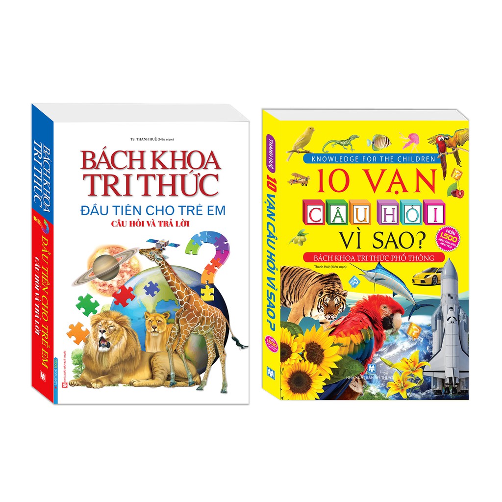 1) Bách khoa tri thức đầu tiên cho trẻ em – Câu hỏi và trả lời (bìa mềm) Tác giả: T.S Thanh Huệ (Biên soạn) Giá bìa: 210.000 ₫ NXB: NXB Mỹ Thuật Phát hành: Minh Thắng Năm xuất bản: 2018 Dạng bìa: bìa mềm) Số trang: 624 trang Kích thước: 19 x 27 cm ——————-Giới thiệu sách———————— Bách Khoa Tri Thức Cho Trẻ Em – Câu hỏi và câu trả lời (bìa mềm) Tri thức bách khoa cho trẻ em là một cuốn cẩm nang chứa đựng mọi kiến thức cần thiết cho các em. Sách được biên soạn đặc biệt để gây hứng thú cho các em đọc và dễ dàng tra cứu: – Cuốn sách gồm :624 trang, Tri thức bách khoa cho trẻ em được thể hiện bằng một ngôn ngữ đơn giản, rõ ràng, giàu hình ảnh để các em có thể tự xem hoặc cùng đọc trong gia đình. – Sắp xếp theo chủ đề gồm 7 chủ đề: Có thể nhận biết mỗi nội dung trong 7 chủ đề. Các chương bao quát tất cả những gì mà các em quan tâm: Tìm hiểu về thực vật, Giao Thông, Thế giới loài cá, Thế giới loài chim, Tìm hiểu về vũ khí, Cơ thể con người, Thám hiểm cổ kim. – Gồm 122 câu chuyện giúp các bạn nhỏ thỏa thích khám phá và tìm hiểu Mời các em đón đọc! 2) 10 vạn câu hỏi vì sao? – Bách khoa tri thức phổ thông (tranh màu – bìa mềm) Tác giả: Thanh Huệ Giá bìa: 180.000 ₫ NXB: NXB Mỹ Thuật Phát hành: Minh Thắng Năm xuất bản: 2020 Dạng bìa: bìa mềm Số trang: 276 trang Kích thước: 19 x 27 cm ——————–Giới thiệu sách—————- 10 vạn câu hỏi vì sao? – Bách khoa tri thức phổ thông (tranh màu – bìa mềm) “10 Vạn Câu Hỏi Vì Sao” là cuốn sách thuộc tủ sách kiến thức phổ thông giàu tính thông tin và tính thực tiễn. Với nội dung phong phú, văn phong giản dị, dễ hiểu, cuốn sách lôi cuốn bạn đọc vào thế giới tri thức muôn màu của các lĩnh vực: thực vật, động vật, y học, thể thao, vật lý, thiên văn, môi trường sinh thái… như một cuộc du lịch đầy hào hứng. Hy vọng, cuốn sách sẽ mang lại cho bạn đọc những điều bổ ích và lý thú. Các câu hỏi sẽ giúp các bạn tìm hiểu được vô số điều bổ ích từ thế giới muôn màu: Tại sao bóng đèn điện lại có thể phát sáng? Voi có phải là động vật lớn nhất không? Trai di chuyển như thế nào? Lợn có ngu không? Vì sao cá chuồn biết bay?…