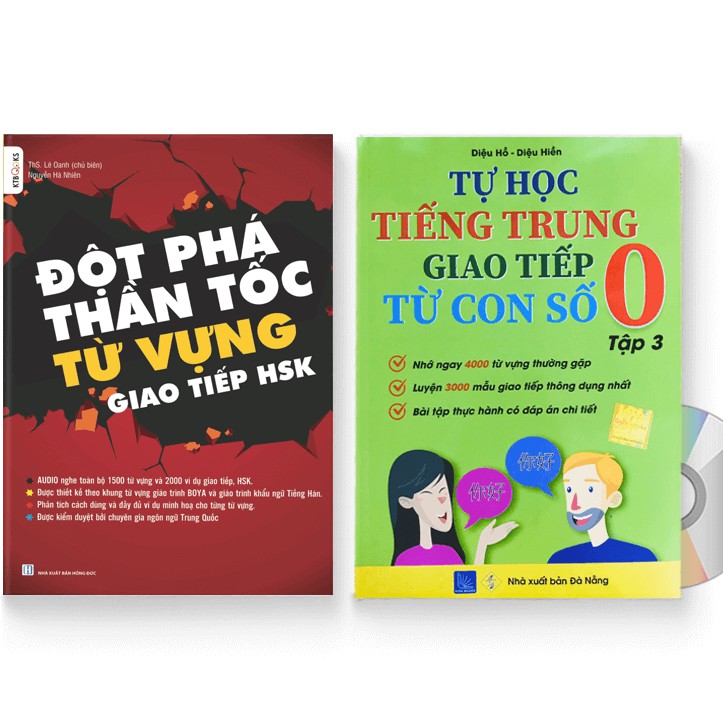 Sách – Combo: Đột Phá Thần Tốc Từ Vựng Giao Tiếp HSK + Tự Học Tiếng Trung Giao Tiếp Từ Con Số 0 Tập 3 + DVD quà tặng. Đột Phá Thần Tốc Từ Vựng Giao Tiếp HSK Tác giả: Lê Oanh – Nguyễn Hà Nhiên Số trang: 283 Năm xuất bản: 2020 Nhà Xuất Bản: Hồng Đức Nội dung sách: Là cuốn sách giao tiếp đầu tiên bạn cần có khi bắt đầu học tiếng Trung từ con số 0. Sách dành cho người mới bắt đầu, người học giao tiếp, ôn luyện thi HSK sơ, trung cấp với hơn 1500 từ vựng gốc và từ vựng mở rộng, 3000 ví dụ giao tiếp đời sống cũng như hàn lâm học thuật để phục vụ thi HSK, thi đại học, giao tiếp trong đời sống, công việc,… Cuốn sách được chia theo 30 chủ điểm của chương trình hán ngữ BOYA của Đại học ngôn ngữ Bắc Kinh bao gồm: Chào hỏi, cách nói giờ, thời tiết, gia đình, mua bán, hỏi đường, đi bệnh viện,… Sách đảm bảo tuyệt đối về tính chính xác của ngôn ngữ Việt – Trung, toàn bộ ví dụ và cách sử dụng được kiểm duyệt kĩ càng, 100% sử dụng trong đời sống hằng ngày và sát với kiến thức HSK, đảm bảo bạn giành được điểm HSK cực kì cao và giao tiếp thành thạo sau 3 tháng ôn luyện. Mỗi mục từ vựng được thiết kế theo hình thức học thuật và giao tiếp: ☄️☄️:Phần 1 : bao gồm chữ Hán, phiên âm, từ loại, nghĩa và bối cảnh sử dụng. Phần chữ Hán sẽ được bổ sung thuận bút và phân tích chữ Hán theo 214 bộ thủ cũng như cách ghi nhớ dễ dàng. ☄️☄️ Phần hai : bao gồm 2 đến 4 ví dụ, mỗi từ loại sẽ có ít nhất 1 ví dụ về cách dùng. Các ví dụ sẽ xoay quanh chủ điểm của bài, là những câu giao tiếp đời sống hàng ngày cũng như các ví dụ mang tính hàn lâm, xuất hiện những nội dung ngữ pháp quan trọng (kết cấu định trung, bổ ngữ, trạng ngữ, động từ lặp,…) đảm bảo giúp học viên hiểu rõ cách sử dụng từ và cách sử dụng ngữ pháp. :☄️☄️ Phần ba: Là phần mở rộng từ vựng, với mỗi 1 từ gốc sẽ được phát triển thành các từ nhánh, hệ thống từ vựng theo tư duy, phần này sẽ xuất hiện từ 1-4 từ mở rộng và ví dụ kèm theo từ, giúp người học biết từ gốc sẽ được ghép với những từ nào, sử dụng trong những văn cảnh như thế nào. Ngoài các ví dụ, sách còn cung cấp các đoạn hội thoại ngắn tổng hợp từ vựng cũng như đặt người học vào bối cảnh để thực hành hội thoại, nâng cao kĩ năng đọc hiểu và giao tiếp. Sách có #AUDIO nghe toàn bộ ví dụ 30 chủ điểm do thạc sĩ Oanh Lê (phát âm chuẩn như người bản xứ) cùng chuyên gia ngôn ngữ Trung Quốc thu âm. Đầy đủ #VIDEO giảng dạy 30 bài học do các thầy cô giảng viên thạc sĩ của Molii FM thực hiện hỗ trợ người học (học qua livestream). Là cuốn sách song ngữ, có phiên âm đầy đủ cho hệ thống từ vựng và hơn 3000 ví dụ, phiên âm chuẩn xác dễ dàng luyện đọc, luyện giao tiếp. Tự Học Tiếng Trung Giao Tiếp Từ Con Số 0 Tập 3 Tác giả: Diệu Hồ, Diệu Hiền Số trang: 210 Năm xuất bản: 2019 Nhà xuất bản: NXB Đà Nẵng Giá bìa: 189.000 VNĐ Nội dung sách: “Tự Học Tiếng Trung Giao Tiếp Từ Con Số 0 Tập 3” là giáo trình tự học giúp nhớ ngay 4000 từ vựng thường gặp, luyện 3000 mẫu giao tiếp thông dụng nhất, bài tập thực hành có đáp án chi tiết DVD đi kèm và link Online backup chứa 30Gb dữ liệu quà tặng, Chi tiết: ♦ 200 bộ đề thi có đầy đủ audio nghe và đáp án từ HSK1 đến HSK6 ♦ Tổng hợp tài liệu dành cho người mới bắt đầu học tiếng Trung ♦ Từ điển thành ngữ tiếng Trung ♦ Từ vựng tiếng Trung theo chủ đề ♦ Giáo trình luyện thi HSK từ sơ cấp đến cao cấp ♦ Giáo trình ngữ pháp tiếng Trung ♦ Bộ giáo trình Hán ngữ 6 quyển (kèm file nghe) ♦ Bộ giáo trình Boya 9 quyển (kèm file nghe) ♦ Tài liệu học giao tiếp tiếng Trung theo tình huống ♦ Giáo trình 301 câu đàm thoại tiếng Trung ♦ 3000 câu giao tiếp thông dụng trong tiếng Trung ♦ 1000 câu giao tiếp cơ bản trong tiếng Trung ♦ 5000 Từ vựng HSK 1-6 Anh, Trung (có cả Giản + Phồn), Việt, bồi; có hướng dẫn viết từng nét cho từng chữ; có Audio nghe ♦ 10,000 ví dụ HSK1 – HSK5 có tiếng Anh, tiếng Trung giản, phồn, bồi, tiếng Việt, và Audio ♦ Giáo trình dạy tiếng Việt cho người Trung Quốc ♦ Kho sách về du lịch Trung Quốc ♦ Audio Nghe 1001 Bức Thư Viết Cho Tương Lai ♦ Audio Nghe 999 Bức Thư Viết Cho Bản Thân ♦ Audio Nghe Phát triển từ vựng tiếng Trung Ứng dụng ♦ Audio Nghe Sách Du Lịch Việt Nam – Ẩm Thực và Cảnh Điểm ♦ Audio Nghe sách Trung Quốc 247: Góc nhìn bỡ ngỡ ♦ Audio Nghe sách Trung Quốc 247: Mái nhà thân thuộc ♦ Audio nghe sách Cuộc đời phụ nữ: Muôn vàn lý do hạnh phúc ♦ Audio nghe sách 123 Thông điệp thay đổi tuổi trẻ ♦ Audio nghe bộ sách từ điển HSK hiệ đại tập 1-2-3 ♦ Audio nghe sách Tứ Hải Giai Huynh Đệ: Tôi là Ai? Tôi đang ở Đâu? ♦ Audio nghe sách Tứ Hải Giai Huynh Đệ: Bạn là Ai? Bạn từ đâu Đến? ♦ … và còn rất nhiều quà tặng nữa, bạn hãy khám phá trong DVD và link quà tặng nhé!