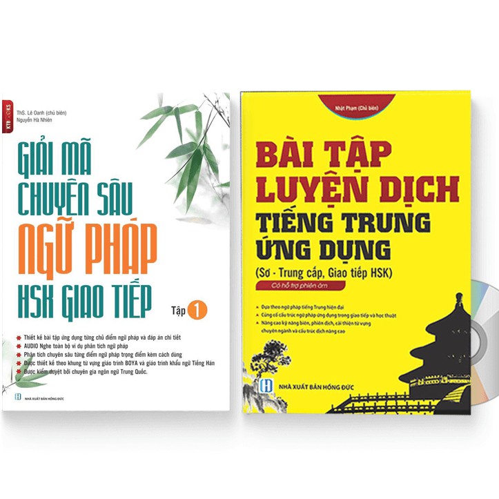 Sách – Combo: Giải mã chuyên sâu ngữ pháp HSK giao tiếp (tập 1) + Bài tập luyện dịch tiếng Trung Ứng Dụng + DVD quà tặng Giải mã chuyên sâu ngữ pháp HSK giao tiếp (tập 1) Tác giả: Lê Oanh – Nguyễn Hà Nhiên Số trang: 276 Năm xuất bản: 2020 Nhà Xuất Bản: Hồng Đức Nội dung sách: Cuốn “GIẢI MÃ CHUYÊN SÂU NGỮ PHÁP HSK GIAO TIẾP” là một cuốn sách kết hợp phân tích chuyên sâu ngữ pháp HSK và nâng cao năng lực giao tiếp, nghe nói phản xạ. Cuốn sách là sự lựa chọn tốt nhất cho những người tự học Tiếng Trung, người kém ngữ pháp, giao tiếp kém, kĩ năng biên phiên dịch còn yếu,… Bài tập luyện dịch tiếng Trung Ứng Dụng (Sơ – Trung cấp, giao tiếp HSK) (Trung – Pinyin – Việt, có đáp án) (Có Audio nghe) Tác giả: Nhật Phạm Số trang: 350 Ngày xuất bản: 01/11/2017 Nhà Xuất Bản: Hồng Đức Nội dung sách: Cuốn sách được biên soạn chi tiết tỉ mỉ với các phần bài tập kèm phần đáp án có hỗ trợ từ vựng, cấu trúc hiếm gặp, cấu trúc nâng cao. Các phần tiếng Trung đều được chèn phiên âm vào để hỗ trợ cho người học trong việc tích lũy từ vựng! DVD đi kèm và link Online backup chứa 30Gb dữ liệu quà tặng, Chi tiết: ♦ file nghe toàn bộ ví dụ 100 chủ điểm ngữ pháp ♦ 200 bộ đề thi có đầy đủ audio nghe và đáp án từ HSK1 đến HSK6 ♦ Tổng hợp tài liệu dành cho người mới bắt đầu học tiếng Trung ♦ Từ điển thành ngữ tiếng Trung ♦ Từ vựng tiếng Trung theo chủ đề ♦ Giáo trình luyện thi HSK từ sơ cấp đến cao cấp ♦ Giáo trình ngữ pháp tiếng Trung ♦ Bộ giáo trình Hán ngữ 6 quyển (kèm file nghe) ♦ Bộ giáo trình Boya 9 quyển (kèm file nghe) ♦ Tài liệu học giao tiếp tiếng Trung theo tình huống ♦ Giáo trình 301 câu đàm thoại tiếng Trung ♦ 3000 câu giao tiếp thông dụng trong tiếng Trung ♦ 1000 câu giao tiếp cơ bản trong tiếng Trung ♦ 5000 Từ vựng HSK 1-6 Anh, Trung (có cả Giản + Phồn), Việt, bồi; có hướng dẫn viết từng nét cho từng chữ; có Audio nghe ♦ 10,000 ví dụ HSK1 – HSK5 có tiếng Anh, tiếng Trung giản, phồn, bồi, tiếng Việt, và Audio ♦ Giáo trình dạy tiếng Việt cho người Trung Quốc ♦ Kho sách về du lịch Trung Quốc ♦ Audio Nghe 1001 Bức Thư Viết Cho Tương Lai ♦ Audio Nghe 999 Bức Thư Viết Cho Bản Thân ♦ Audio Nghe Phát triển từ vựng tiếng Trung Ứng dụng ♦ Audio Nghe Sách Du Lịch Việt Nam – Ẩm Thực và Cảnh Điểm ♦ Audio Nghe sách Trung Quốc 247: Góc nhìn bỡ ngỡ ♦ Audio Nghe sách Trung Quốc 247: Mái nhà thân thuộc ♦ Audio nghe sách Cuộc đời phụ nữ: Muôn vàn lý do hạnh phúc ♦ Audio nghe sách 123 Thông điệp thay đổi tuổi trẻ ♦ Audio nghe bộ sách từ điển HSK hiệ đại tập 1-2-3 ♦ Audio nghe sách Tứ Hải Giai Huynh Đệ: Tôi là Ai? Tôi đang ở Đâu? ♦ Audio nghe sách Tứ Hải Giai Huynh Đệ: Bạn là Ai? Bạn từ đâu Đến? ♦ … và còn rất nhiều quà tặng nữa, bạn hãy khám phá trong DVD và link quà tặng nhé!!