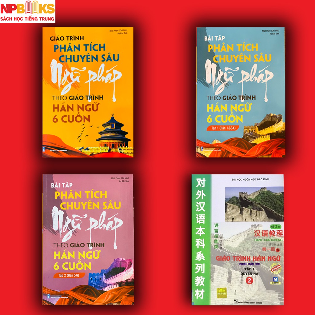 1. Giáo trình hán ngữ 2 Giáo Trình Hán Ngữ 2 – Tập 1 quyển hạ Bộ Giáo Trình Hán Ngữ gồm nhiều bài với nội dung từ dễ đến khó. Bắt đầu từ luyện tập ngữ âm cơ bản tiếng Hán, từ đó tiến hành giảng dạy kết cấu ngữ pháp, ngữ nghĩa và ngữ dụng, cuối cùng là giai đoạn giảng dạy ngữ đoạn, thông qua sự hiểu biết sâu hơn về ngữ pháp và vận dụng từ ngữ, để nâng cao hơn nữa khả năng biểu đạt thành đoạn văn của người học. Mỗi bài học bao gồm các phần: Bài khóa Từ mới Chú thích Ngữ pháp, ngữ âm Luyện tập Số trang: 178 Tác giả: Nhiều tác giả Năm phát hành: 2019 2.Giáo trình phân tích chuyên sâu ngữ pháp tiếng Trung Bạn đã quá đau đầu khi tự học ngữ pháp qua những giáo trình Hán ngữ, boya, 301…. vì quá là sơ sài và khó hiểu. NP BOOKS đã ra mắt bộ sách GIÁO TRÌNH PHÂN TÍCH CHUYÊN SÂU NGỮ PHÁP theo giáo trình Hán ngữ 6 cuốn tổng hợp các các cấu trúc ngữ pháp tiếng Trung từ A đến Z được sắp xếp giống như bộ giáo trình Hán ngữ 6 cuốn. Bộ sách gồm 3 cuốn 1. GIÁO TRÌNH PHÂN TÍCH CHUYÊN SÂU NGỮ PHÁP theo Hán Ngữ 6 CUỐN – Sách phân tích sâu và kỹ các mảng ngữ pháp tiếng Trung nói chung và các mảng ngữ pháp được nhắc đến trong bộ giáo trình Hán ngữ từ cơ bản đến nâng cao. – Sách phù hợp với những người đang học tiếng Trung theo các giáo trình Boya, Hán ngữ, Phát triển Hán ngữ, giáo trình tự học tiếng Trung giao tiếp… muốn củng cố ngữ pháp, học mới ngữ pháp phục vụ việc nghe nói đọc viết chuyên nghiệp Sách in khổ to, in 2 màu rõ ràng giấy cao cấp, độ dày 600 trang 2. SÁCH BÀI TẬP TẬP 1 CỦA GIÁO TRÌNH – Các dạng bài tập, kèm đáp án của các tiêu điểm ngữ pháp từ Hán ngữ 1 đến Hán ngữ 4 , cũng tương đương cho ngữ pháp HSK cấp 1-4 – Sách in cao cấp, khổ to với độ dày khoảng 400 trang 3. SÁCH BÀI TẬP TẬP 2 CỦA GIÁO TRÌNH – Các dạng bài tập, kèm đáp án của các tiêu điểm ngữ pháp từ Hán ngữ 5 đến Hán ngữ 6 , cũng tương đương cho ngữ pháp HSK cấp 5-6 – Sách in cao cấp, khổ to với độ dày 255 trang Tác giả: Nhật Phạm – Hạ Bắc Sinh Nhà xuất bản Thanh Niên Ngày xuất bản: 2019 Số trang của giáo trình: 600 Số trang của bài tập tập 1: 400 trang Số trang của bài tập tập 2: 255 trang Sách in khổ lớn: 18cm x 25cm #tiếng_Trung