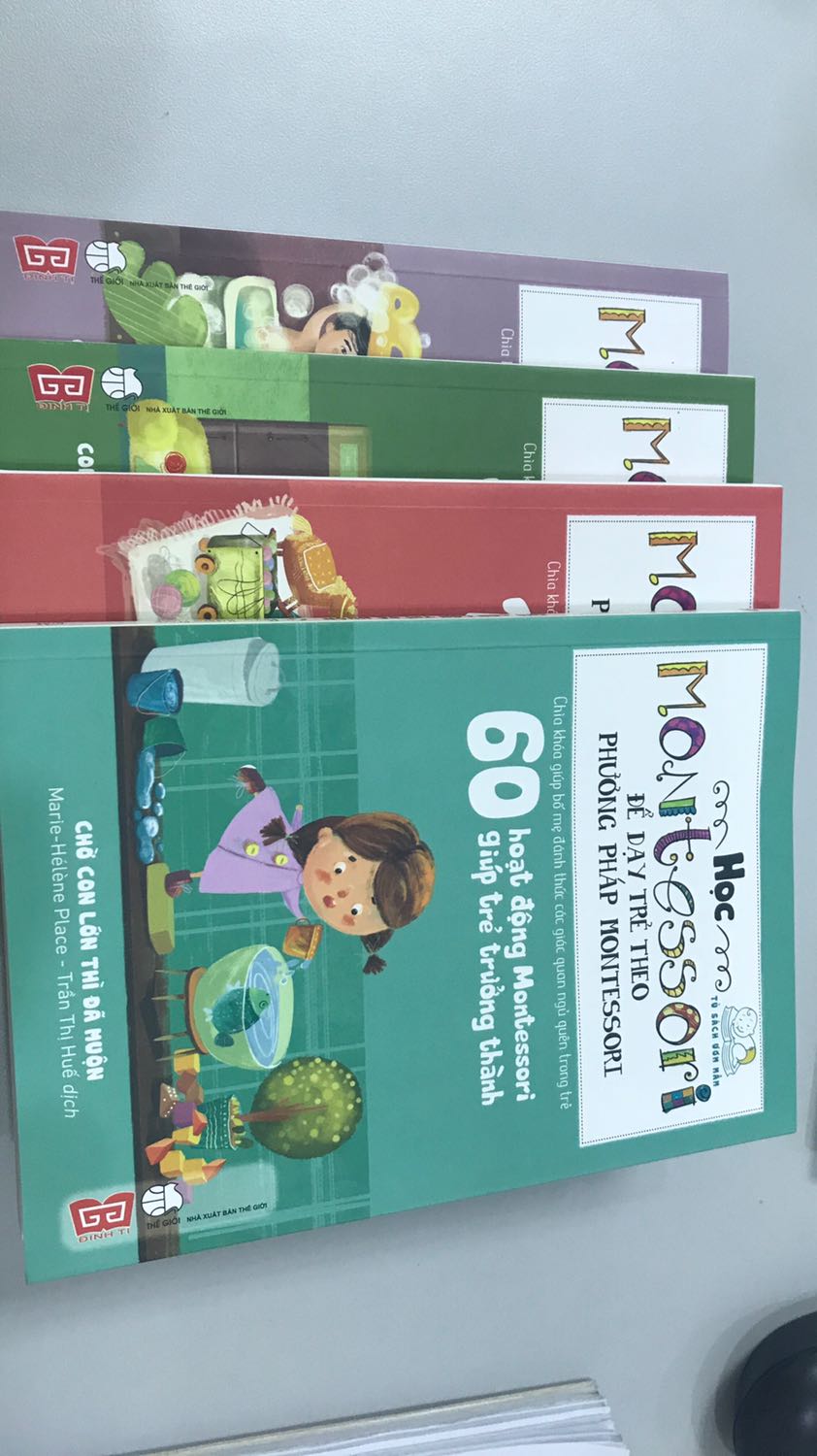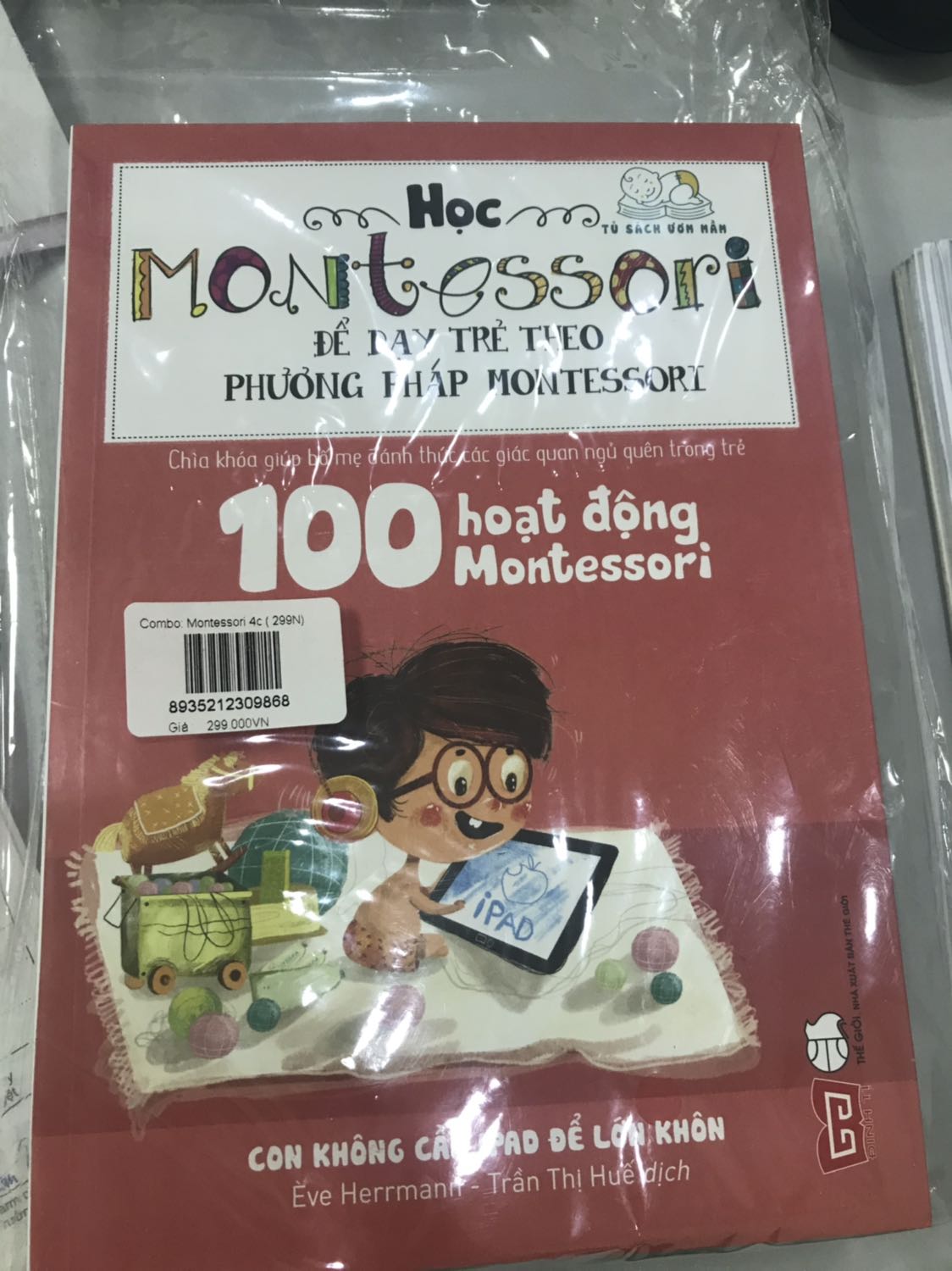 Combo Học Montessori Để Dạy Trẻ Theo Phương Pháp Montessori 3 lý do khiến cha mẹ KHÔNG THỂ BỎ QUA bộ sách HỌC MONTESSORI ĐỂ DẠY TRẺ THEO PHƯƠNG PHÁP MONTESSORI: 1. Bộ sách KHÔNG nhắc lại những lý thuyết Montessori. “Học Montessori để dạy trẻ theo phương pháp Montessori” là tuyển tập các HOẠT ĐỘNG THỰC TẾ cha mẹ có thể dễ dàng thực hành cùng con tại nhà. Bộ sách được viết dựa trên những kinh nghiệm tự học và dạy con theo phương pháp Montessori của hai bà mẹ, cũng là hai chuyên gia Montessori người Pháp: Ève Herrmann và Marie-Hélène Place. Vì vậy, các hoạt động Montessori được lựa chọn giới thiệu đều có tính ứng dụng cao và đặc biệt tạo hứng thú cho trẻ nhỏ. 2. Cha mẹ có thể TỰ LỰA CHỌN hoạt động phù hợp với độ tuổi, cá tính, sở thích riêng của con. Mỗi cuốn sách đều đưa ra những phân tích ngắn gọn về hiệu quả của hoạt động và gợi ý về độ tuổi trẻ có thể áp dụng. Tuy nhiên, tác giả luôn khuyên khích cha mẹ quan sát, lắng nghe và đồng hành cùng quá trình phát triển giác quan, nhận thức của con để lựa chọn hoạt động phù hợp với bé. 3. Bộ sách TOÀN DIỆN NHẤT về thực hành Montessori dành cho cha mẹ. Bốn cuốn sách với nhiều chủ đề khác nhau sẽ cung cấp cho cha mẹ những hướng dẫn hoạt động Montessori trên cả 5 lĩnh vực cơ bản: Thực hành giác quan, Giác quan, Toán học, Ngôn ngữ và Văn hóa – nghệ thuật. Các hoạt động đồng thời cũng tương ứng với các giai đoạn phát triển có tính quyết định của trẻ như: giai đoạn từ khi chào đời đến một tuổi, giai đoạn một tuổi rưỡi và giai đoạn từ hai đến sáu tuổi. Việc áp dụng phương pháp Montessori không đòi hỏi cha mẹ phải đưa trẻ tới các trường học Montessori đắt tiền mà quan trọng là cha mẹ hiểu được tinh thần của phương pháp giáo dục này: Tôn trọng trẻ như một tiểu thế giới riêng khác. Combo Học Montessori Để Dạy Trẻ Theo Phương Pháp Montessori gồm 4 cuốn: 100 hoạt động Montessori: Cha mẹ nên chuẩn bị cho trẻ tập đọc và viết như thế nào? 100 hoạt động Montessori: Con không cần iPad để lớn khôn 100 hoạt động Montessori: Con không muốn làm cây trong lồng kính 60 hoạt động Montessori giúp trẻ trưởng thành: Chờ con lớn thì đã muộn.