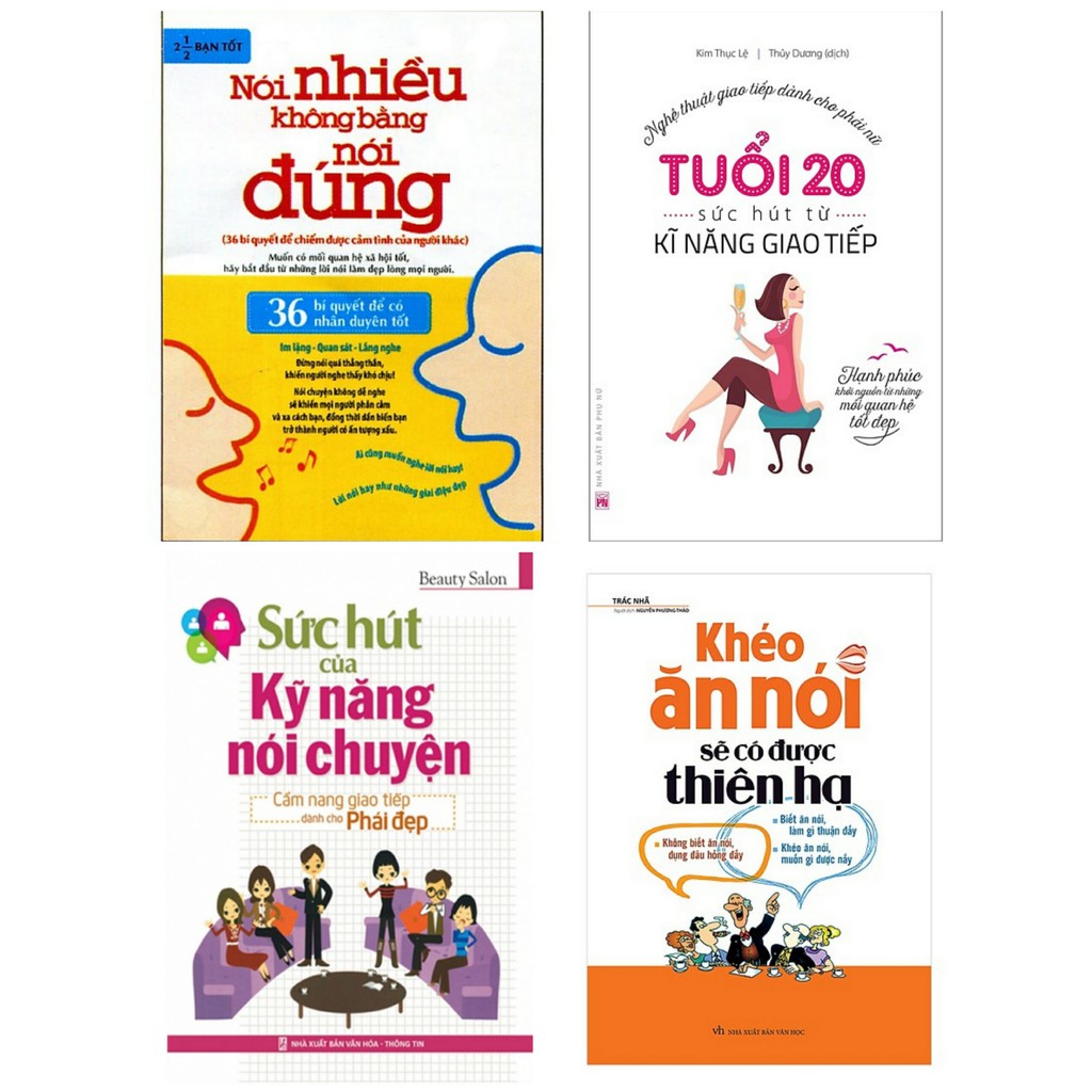 SÁCH XỊN GIÁ SIÊU MỀM YÊU SUPER SALE GIẢM 20-40% THEO DÕI SHOP ĐỂ NHẬN ĐƯỢC NHIỀU QUÀ QUÀ TẶNG đơn từ 300K+ INBOX cho shop để tư vấn sách hay bạn nhé Hãy bấm vào hashtag để xem thêm sách chonloc dành cho bạn: #happybooks #sachnuoidayconchonloc #sachlamchamechonloc #sachhaychobechonloc ========*LỜI GIỚI THIỆU*========== Combo sách kỹ năng sống tuyệt vời dành cho bạn 1.Khéo Ăn Nói Sẽ Có Được Thiên Hạ Trong xã hội thông tin hiện đại, sự im lặng không còn là vàng nữa, nếu không biết cách giao tiếp thì dù là vàng cũng sẽ bị chôn vùi. Trong cuộc đời một con người, từ xin việc đến thăng tiến, từ tình yêu đến hôn nhân, từ tiếp thị cho đến đàm phán, từ xã giao đến làm việc… không thể không cần đến kĩ năng và khả năng giao tiếp. Khéo ăn khéo nói thì đi đâu, làm gì cũng gặp thuận lợi. Không khéo ăn nói, bốn bề đều là trở ngại, khó khăn. Trong thời đại thông tin và liên lạc phát triển nhanh chóng, tin tức được cập nhật liên tục, các công cụ thông tin và kĩ thuật truyền thông được ứng dụng rộng rãi như ngày nay thì việc khéo ăn nói đã trở thành “cái tài số một thiên hạ”. Trong khoảng thời gian ngắn nhất, nếu ai có thể nêu bật được khả năng, thực lực của mình cho đối phương biết thì đó sẽ là người chiến thắng. Chính vì vậy mà câu nói “Khéo ăn nói sẽ có được thiên hạ” rất có ý nghĩa. Vậy, như thế nào mới gọi là biết cách ăn nói? Nói năng lưu loát, không ấp úng có được gọi là biết cách nói chuyện không? Nói ngắn gọn, nói ít nhưng ý nghĩa thâm sâu có được gọi là biết cách nói chuyện không? Hay nhất định phải nói nhiều mới là biết nói chuyện? Công ty phát hành Minh Long Tác giả Trác Nhã Ngày xuất bản 06-2018 Nhà xuất bản Nhà Xuất Bản Văn Học Loại bìa Bìa mềm Số trang 406 2.Nói Nhiều Không Bằng Nói Đúng Quyển sách cung cấp 36 bí quyết để chiếm được cảm tình của người khác. Muốn có mối quan hệ xã hội tốt, hãy bắt đầu từ những lời nói làm đẹp lòng mọi người. Trong giao tiếp, hãy luôn nhớ các nguyên tác: Im lặng – Quan sát – Lắng nghe. Đừng nói quá thẳng thắn, khiến người nghe thấy khó chịu! Nói chuyện không dễ nghe sẽ khiến mọi người phản cảm và xa cách bạn, đồng thời dẫn đến việc bạn trở thành người có ấn tượng xấu. Lời nói hay như những giai điệu đẹp, ai cũng muốn nghe. Công ty phát hành Minh Long Tác giả 2.1/2 Bạn Tốt Ngày xuất bản 05-2012 Kích thước 17 x 23 cm Nhà xuất bản Nhà Xuất Bản Dân Trí Loại bìa Bìa mềm Số trang 128 3.Tuổi 20 – Sức Hút Từ Kỹ Năng Giao Tiếp Tuổi đôi mươi, bạn nữ có thể sẽ nghĩ mình đang tuổi thanh xuânnồng nhiệt, đường tới thành công thênh thang rộng mở, cứ tự mà tiến bước. Rồi đôi khi, bạn chợt nhận ra rằng mình đã rất nỗ lực nhưng những mục tiêu đề ra vẫn còn ở quá xa… Tuổi đôi mươi, bạn nữ tự tin mình xinh đẹp, luôn có biết bao người vây quanh khen ngợi, bạn cho rằng không một ai có thể cưỡng lại sự quyến rũ của mình nên chẳng cần phí công đi giao thiệp với người khác làm gì. Nhưng rồi một ngày, vào lúc bạn thật sự cần đến sự giúp đỡ của người khác thì bạn lại nhận ra rằng, chẳng có ai thực lòng muốn giúp bạn cả, dù có thì cũng là vô cùng miễn cưỡng Công ty phát hành Minh Long Tác giả Beauty Salon Ngày xuất bản 12-2014 Kích thước 17 x 23 cm Nhà xuất bản Nhà Xuất Bản Văn Hoá Thông Tin Loại bìa Bìa mềm Số trang 263… 4.Sức Hút Của Kỹ Năng Nói Chuyện Bạn muốn thay đổi thói quen giao tiếp? Bạn cần học hỏi kỹ năng giao tiếp? Bạn mong trở thành nữ hoàng giao tiếp? Qua những ví dụ sinh động và hài hước, cuốn sách sẽ giúp bạn nắm vững thần thái và ngôn ngữ trong các tình huống giao tiếp khác nhau, đưa bạn trở thành nữ hoàng giao tiếp, để lại ấn tượng tốt đẹp trong mắt mọi người. Công ty phát hành Minh Long Tác giả Beauty Salon Ngày xuất bản 12-2014 Kích thước 17 x 23 cm Nhà xuất bản Nhà Xuất Bản Văn Hoá Thông Tin Loại bìa Bìa mềm Số trang 263 #sachhay #truyenhay #khenmangphat #lamchame #nuoidaycon #truyenthieunhihay #sachthieunhichonloc