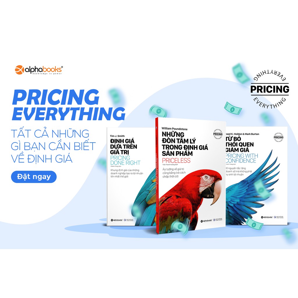 Sách xịn – Combo kinh tế Định Giá Định Giá Dựa Trên Giá Trị – Pricing Done Right Tên Nhà Phát Hành Alpha Books Tác giả Tim J Smith Người Dịch Khánh Trang Nhà xuất bản NXB Công Thương Năm XB 2020 Trọng lượng (gr) 250 Kích thước 24 x 16 cm Số trang 252 Hình thức Bìa Mềm Doanh nghiệp nào cũng phải đối mặt với những thách thức về quản lý giá cả nhưng không nhiều doanh nghiệp tìm ra cách giải quyết hiệu quả. Tim Smith cho rằng các cấp quản lý cần một khung/mô hình giúp định hình các bộ phận, quy trình, nhân sự, quản lý thông tin và các công cụ phân tích hướng dẫn từng bộ phận đưa ra quyết định về giá cả chuẩn xác nhất cho sản phẩm. Mô hình đó là Khung Định Giá Dựa Trên Giá Trị, gồm năm khía cạnh: chiến lược kinh doanh, chiến lược định giá, Định giá thị trường, chính sách phương sai giá và thực hiện triển khai giá… Khung định giá này đã giúp cho những doanh nghiệp ứng dụng nó tạo ra lợi nhuận khổng lồ như thế nào? Mời bạn cùng đọc và khám phá. “…Trong khi nhiều cuốn sách khác chỉ nói về các khái niệm định giá, thì cuốn sách này sẽ chỉ dẫn việc áp dụng các khái niệm vào thực tế.” — DENNIS STONE, CEO và Chủ tịch của Overhead Door Corporation Từ Bỏ Thói Quen Giảm Giá – Pricing With Confidence Tên Nhà Phát Hành Alpha Books Tác giả Reed K Holden, Mark Burton Người Dịch Khánh Trang Nhà xuất bản NXB Công Thương Năm XB 2020 Trọng lượng (gr) 280 Kích thước 24 x 16 cm Số trang 276 Hình thức Bìa Mềm Sai lầm định giá là cách nhanh nhất hủy hoại giá trị, doanh thu và lợi nhuận của công ty bạn. Với 10 quy tắc đơn giản để không mất tiền oan, cuốn sách Từ Bỏ Thói Quen Giảm Giá chỉ cho bạn cách lợi nhuận và doanh thu tăng trưởng mạnh mẽ như thế nào nếu bạn mạnh mẽ từ bỏ thói quen giảm giá đáng sợ. Thông qua cuốn sách, các tác giả sẽ khiến bạn từ bỏ lối suy nghĩ “khôn ngoan” thông thường là phải đánh đổi lợi nhuận để có doanh thu và chỉ cho bạn cách khai thác triệt để những giá trị mà công ty bạn mang lại cho khách hàng. Cách cải tiến này đã được chứng minh rằng bạn tăng doanh số mà chẳng hề phải hy sinh lợi nhuận! “Những kiến thức tuyệt vời, những ví dụ thành công và thất bại, và thông điệp mà bất kỳ doanh nghiệp nào cũng có thể ứng dụng để cải thiện vị thế của mình với các bên liên quan, nội bộ cũng như đối ngoại.” — SCOTT S. Những Đòn Tâm Lý Trong Định Giá Sản Phẩm – Priceless Tên Nhà Phát Hành Alpha Books Tác giả William Poundstone Người Dịch Trần Thanh Hương Nhà xuất bản NXB Công Thương Năm XB 2020 Trọng lượng (gr) 350 Kích thước 24 x 16 cm Số trang 364 Hình thức Bìa Mềm Trong Những Đòn Tâm Lý Trong Định Giá Sản Phẩm, William Poundstone tiết lộ tâm lý ẩn giấu của việc định giá sản phẩm dựa trên giá trị. Các thí nghiệm tâm lý cho thấy không thể tính giá “công bằng” một cách chính xác và và việc định giá bị tác động mạnh mẽ bởi sự vô thức, phi lý và chính trị. Nhờ đó, các nhà tiếp thị có thể áp dụng những phát hiện này (thiết kế thẻ giá, thực đơn, giảm giá, quảng cáo “bán”, thiết kế lối đi trong siêu thị, tâm lý mua bán bất động sản, gói lương…) để thuyết phục người tiêu dùng tự nguyện trả nhiều tiền hơn để có được thứ mình muốn. Hầu hết các chương sách đều được mở đầu bằng một giai thoại hoặc chân dung của một nhân vật thú vị ở Mỹ để lôi cuốn và dẫn dắt độc giả đến những khái niệm quan trọng: mỏ neo, sự gắn kết giá cả… Để rồi tác giả tiếp tục làm rõ bản chất của những khái niệm này thông qua một loạt thí nghiệm và tình huống hấp dẫn, kích thích sự tò mò, khám phá. Một cuốn sách về định giá hấp dẫn không thể bỏ qua! “Những đòn tâm lý trong định giá sản phẩm là cuốn sách để mọi người tự hỏi rằng tiền bạc và giá cả thực sự có ý nghĩa như thế nào.”— DANIEL KAHNEMAN, Giáo sư danh dự trường Princeton University, đoạt giải thưởng Noel năm 2002 trong lĩnh vực kinh tế