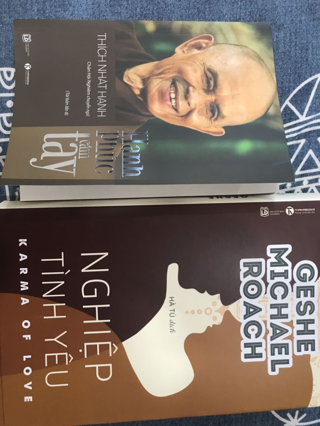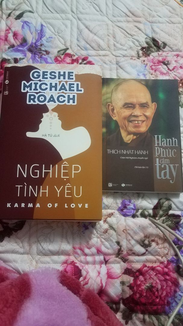 Hạnh Phúc Cầm Tay Cuộc sống quanh ta đầy màu nhiệm, chánh niệm là trái tim của thiền tập, là nguồn năng lượng xuyên suốt không thể thay đổi. Một người sống trong chánh niệm, tâm an, sẽ khiến những người xung quanh vui vẻ, an nhiên và thậm chí thay đổi cả xã hội. “Tất cả chúng ta đều có hạt giống của niệm và định”. “Định làm phát sinh hỷ lạc” Định nguồn căn, có định con người sẽ cảm thấy đang thực sự sống chứ không phải chỉ tồn tại. Cảm nhận cuộc đời tươi đẹp không qua đôi mắt mà qua hơi thở và tâm hồn. Thiền sư Lâm Tế đã nói rằng: “Phép lạ là đi trên mặt đất mà không phải đi trên mặt nước hay đi trên than hồng”. Tất cả những gì ta làm đều cốt yếu là để tâm an. Mỗi ngày, ta đì tìm tự do cho hạnh phúc, hay hạnh phúc để được tự do? Nếu cứ mải mê mắc kẹt trong quá khứ và lo buồn về tương lai, hiện tại sẽ tự nhiên ngả màu héo úa. Nghỉ ngơi là bước đầu tiên của thiền tập, và con đường ngắn nhất là thả lỏng và không gượng ép. Sống là để không uổng phí một đời, sống trọn vẹn từng giây phút, thanh thản từng hành động. Bước đi một cách thoải mái, an lạc, đi như không đi sẽ không thấy mệt mỏi. Sự cố gượng là không cần thiết nếu ta hiểu được rằng mỗi bước đi là mỗi bước được tiếp xúc với cuộc đời và sự màu nhiệm vô tận. Chạm vào đất Mẹ là nguồn căn của “Sám Pháp địa xúc”, người thường cũng có thể thực hành khi bế tắc, lo sợ, Người nhẫn nại bảo hộ, che chở và cho ta lối thoát, mọi thứ tự khắc trở nên nhẹ nhàng. Cuốn sách tiếp tục với Năm uẩn trong một con người: sắc, thọ, tưởng, hành, thức, đều cần ta trị vì, cai quản. Có chánh niệm sẽ nhận diện được tập khí khi chúng đang phát khởi và ngăn ngừa nó hoành hành ta, quấy nhiễu giấc ngủ ta mỗi đêm. Cả những tri giác sai lầm vây bám lấy tâm trí ta, cũng sẽ được loại bỏ. Khép lại với Năm giới tân tu: Bảo vệ sự sống, Hạnh phúc chân thật, Tình thương đích thực, Lắng nghe và ái ngữ, Nuôi dưỡng và trị liệu là năm phép thực tập chánh niệm, có khả năng xóa bỏ mọi rào cản, kể cả hận thù và tuyệt vọng để ta bước đi trên con đường thanh thản, sống cuộc đời đáng sống của ta. Nghiệp Tình Yêu Geshe Michael Roach đã viết cuốn sách Năng đoạn Kim cương. Nó được đặt theo tên của một bộ kinh nổi tiếng giải thích về nghiệp cùng khía cạnh kém quan trọng hơn của nó, đó là khái niệm “không” trong Phật giáo. Nó đã trở thành cuốn sách kinh doanh bán chạy trên khắp thế giới, được dịch ra khoảng 25 thứ tiếng, và được hàng triệu người đón nhận; nổi tiếng nhất là bản tiếng Trung và nó đã giúp nhiều người đạt được tự do tài chính. Từ đó, mọi người bắt đầu mời ông đến nói chuyện về cuốn sách. Kể từ khi cuốn sách ra đời, Geshe cùng các đồng nghiệp tại Học viện Năng đoạn Kim cương đã tiến hành các buổi hội thảo kinh doanh và khóa tu cho hàng ngàn người thuộc nhiều quốc gia. Trong những chương trình này, họ thường tổ chức những buổi thảo luận nhỏ có tên là “Trí tuệ cho cuộc sống hàng ngày,” và ở đó, những người tham gia sẽ có cơ hội đặt các câu hỏi có liên quan đến công ty cũng như sự nghiệp của họ. Một hôm, trong một chương trình ở Trung Quốc, một người phụ nữ đã hỏi rằng liệu Geshe có thể trả lời một câu hỏi không liên quan đến kinh doanh mà về mối quan hệ của cô với chồng được không. Liệu các Nguyên tắc Năng đoạn Kim cương – các nguyên tắc về hạt giống nghiệp – có áp dụng được vào cuộc sống gia đình không? Geshe trả lời rằng, tất nhiên là được; rằng những hạt giống nghiệp trong tâm chúng ta, chịu trách nhiệm cho tất cả mọi thứ và tất cả mọi người xung quanh chúng ta. Đột nhiên, như thể một con đập vừa bị vỡ, mọi người bắt đầu đưa ra những câu hỏi mà từ lâu bị dồn nén về những vấn đề tế nhị nhất liên quan đến mối quan hệ của họ với người bạn đời của mình. Lúc đó, ông nhận ra rằng quan tâm đến các nhu cầu tâm linh – cũng như các nhu cầu cơm áo gạo tiền – không thôi là chưa đủ. Những mối quan hệ thân mật có lẽ chính là nguồn hạnh phúc lớn nhất trong cuộc đời; và chúng cũng có thể trở thành nguồn đau khổ lớn nhất. Nếu chúng ta muốn hạnh phúc, và nếu chúng ta muốn thế giới hạnh phúc, thì chúng ta phải giải quyết vấn đề về mối quan hệ này!