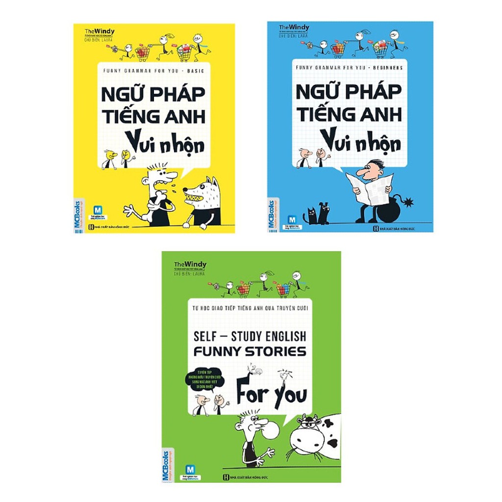Combo sách Ngữ Pháp Tiếng Anh Vui Nhộn 1. Ngữ Pháp Tiếng Anh Vui Nhộn – Basic Hệ thống ngữ pháp theo chuyên đề rõ ràng Nếu bạn băn khoăn sự rối ren trong khi học ngữ pháp thì cuốn sách này có thể giúp bạn yên tâm vì điều đó. Được chia thành 43 chuyên đề, cuốn sách cung cấp đầy đủ các kiến thức ngữ pháp từ đơn giản đến phức tạp đi kèm ví dụ rõ ràng giúp bạn hiểu rõ bản chất để vận dụng vào thiết lập câu tiếng Anh hoàn chỉnh. Ví dụ minh họa thu hút Một cuốn sách sẽ thật khô khan nếu chỉ có những kiến thức lý thuyết khô khan hoặc ngay cả những ví dụ mà chỉ toàn chữ là chữ. Khắc phục sự bất tiện này, với mỗi khái niệm hay định nghĩa, ví dụ trong cuốn sách được minh họa theo dạng hình ảnh tạo cảm giác hứng thú và tránh áp lực cho người mới học. Việc sử dụng hình ảnh để minh họa cho ví dụ không chỉ giúp bạn có cảm hứng học và còn cải thiện khả năng tư duy và phát triển từ vựng cho bạn. Bổ sung vốn từ vựng phong phú Với mỗi chuyên đề, ngoài cung cấp cấu trúc ngữ pháp và cách sử dụng, vốn từ vựng cũng được mở rộng. Đặt từ vựng vựng trong ngữ cảnh giúp bạn rèn luyện khả năng ghi nhớ và mở rộng tư duy. Ví dụ, khi bạn học về các mạo từ trong tiếng Anh (bao gồm a/a/the). Thay vì cung cấp danh sách mạo từ thông thường, cuốn sách sẽ cung cấp thêm ví dụ, hình ảnh minh họa và mở rộng vốn từ vựng với các mạo từ này: Nắm rõ để chủ động Để viết một câu tiếng Anh hoàn chỉnh đòi hỏi bạn phải kết hợp từ vựng và cấu trúc các thành phần câu một cách thuần thục. Khi đã nắm rõ bản chất cấu trúc và cách sử dụng, việc thiết lập câu tiếng Anh bạn chỉ lần luyện tập hàng ngày để tạo nên thói quen phản xạ đơn giản. Cuốn sách gồm 43 chuyên đề ngữ pháp tiếng Anh cơ bản cần phải biết, dành cho đối tượng là người mới bắt đầu học tiếng Anh hoặc cần củng cố bản chất ngữ pháp tiếng Anh. Ngoài ra, phần phụ lục là 360 động từ bất quy tắc là phần tham khảo cho bạn học trong quá trình học để dễ dàng tra cứu. 2. Ngữ Pháp Tiếng Anh Vui Nhộn – Beginners Để có thể chinh phục được kiến thức ngữ pháp tiếng Anh hiệu quả,bạn cần đầu tư thời gian và phương pháp học khoa học và thích hợp. Hy vọng rằng những tuyệt chiêu nhỏ mà chúng tôi đề cập về cuốn sách “Ngữ pháp tiếng Anh vui nhộn – Funny Grammar For You – Beginners” dưới đây sẽ giúp ích cho quá trình chinh phục tiếng Anh của bạn đạt hiệu quả hơn. Mỗi đơn vị bài học là chương trình học tổng hợp nhiều kỹ năng được nghiên cứu, có nhiều tranh ảnh minh họa sinh động giúp các đối tượng học sinh, sinh viên liên kết ảnh, ngôn ngữ và huống giao tiếp, đồng thời tạo niềm say mê, hứng thú cho người học. 3. Tự Học Tiếng Anh Giao Tiếp Qua Truyện Cười Mỗi đơn vị bài học là chương trình học tổng hợp nhiều kỹ năng được nghiên cứu, có nhiều tranh ảnh minh họa sinh động giúp các đối tượng học sinh, sinh viên liên kết ảnh, ngôn ngữ và huống giao tiếp, đồng thời tạo niềm say mê, hứng thú cho người học. Công ty phát hành MCBOOKS Tác giả The Windy Nhà xuất bản Nhà Xuất Bản Hồng Đức Loại bìa Bìa mềm Số trang 800