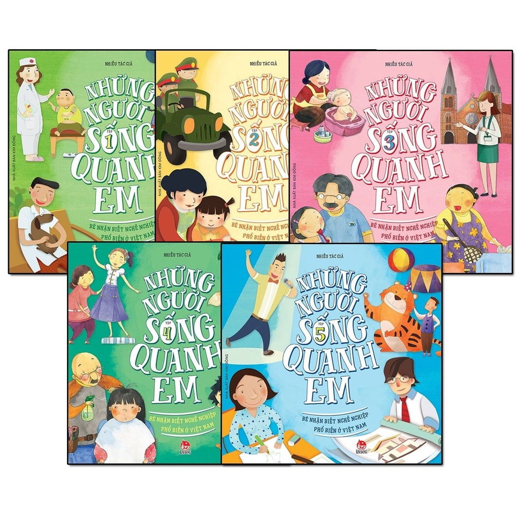 THÔNG TIN CHI TIẾT Nhà xuất bản: Kim Đồng Tác giả: Nhiều Tác Giả Trọng lượng: 100 (gram) Kích thước: 19 x 19 cm Số trang: 150 Năm xuất bản: 2018 Những Người Sống Quanh Em Tập 1: 9786042114158 Những Người Sống Quanh Em Tập 2: 9786042114165 Những Người Sống Quanh Em Tập 3: 9786042114172 Những Người Sống Quanh Em Tập 4: 9786042114189 Những Người Sống Quanh Em Tập 5:9786042114196 Như một “Bách khoa thư về nghề” dành riêng cho nhi đồng, bộ sách Những người sống quanh em mang đến một xã hội thu nhỏ với vô vàn ngành nghề trong cuộc sống. Qua những câu chuyện nhỏ hấp dẫn, những tranh minh họa sống động, các bé sẽ hiểu hơn, yêu hơn và trân trọng hơn những người sống quanh mình. Đó bác bán phở, thím giúp việc, chú kĩ sư, cô bác sĩ, anh ca sĩ hay chú phi công… Bộ sách cũng là một món quà quí giá và bổ ích giúp các bé hoàn thiện kĩ năng sống, khơi mở và vun đắp ước mơ từ những năm tháng đầu đời.
