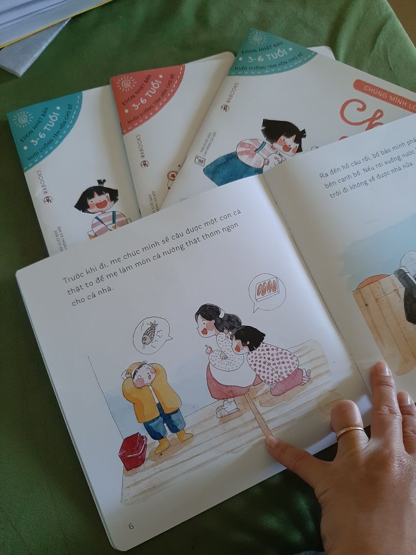 Combo Sách Ehon Nhật Bản: Chúng Mình Lớn Rồi (Set 4 Cuốn Nuôi Dưỡng Tâm Hồn Trẻ Từ 3-6 Tuổi / Ehon Cùng Con Lớn Khôn) Chúng Mình Lớn Rồi những câu chuyện quen thuộc của những bé trong giai đoạn mầm non từ 3 – 6 tuổi, giúp bé từng bước khám phá bản thân và thế giới xung quanh cũng như rèn luyện tính tự lập từ sớm. Bố mẹ hãy cùng con trên hành trình lớn khôn qua những trang sách Ehon đầy màu sắc nhé! Bộ sách Ehon “Chúng mình lớn rồi” dành cho trẻ từ 3 – 6 tuổi “Chúng mình lớn rồi” là bộ sách Ehon 4 cuốn gồm “Dọn đồ chơi nào!”, “Đi câu cá với bố”, “Trường mẫu giáo của tớ”, “Chị và em bé” dành cho trẻ từ 3-6 tuổi. Những câu chuyện Ehon này sẽ giúp phát triển Thùy Đỉnh – phần não có chức năng điều khiển các chức năng vận động toàn thân, sự linh hoạt của cơ thể, nâng cao thể chất cho trẻ, tạo tiền đề phát triển tối đa trí tuệ và sức khỏe. Từ các câu chuyện hằng ngày đơn giản, bé được rèn tính tự lập và trách nhiệm qua những kỹ năng bổ ích. Bé còn được trau dồi tình yêu gia đình, sự cảm thông, chia sẻ với những người xung quanh. Trẻ em dù bé tí xíu xiu nhưng trong suy nghĩ của con sẽ luôn tò mò và mong muốn trở thành người lớn. Đối với trẻ, thế giới của người lớn thật nhiệm màu, tự do và cả trách nhiệm nữa. Đặc biệt ở giai đoạn mẫu giáo, con sẽ lớn rất nhanh về cả suy nghĩ và thể chất. Vì vậy, vai trò của bố mẹ trong thời kỳ này rất quan trọng để giúp định hình tính cách và nuôi dưỡng tâm hồn các bé trở thành những em bé có trách nhiệm, tự lập và giàu lòng yêu thương đấy. Dù cuộc sống bộn bề nhưng bố mẹ hãy dành vài phút đọc sách Ehon cùng con để nuôi dưỡng tâm hồn và trí tuệ bé ngày một lớn khôn nhé!