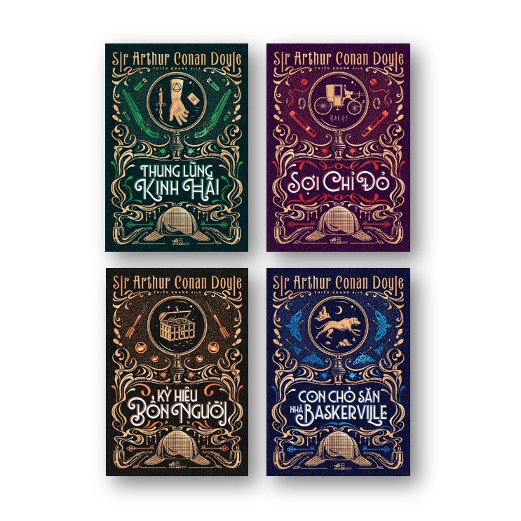 Công ty phát hành: Nhã Nam Tác giả: Sir Arthur Conan Doyle Nhà xuất bản: NXB Hội Nhà Văn Năm xuất bản: 2018 Số trang: 944 Giới thiệu sách: Combo Sherlock Homes gồm 4 cuốn: 1. Thung Lũng Kinh Hãi Lạnh lùng, khô khan, một khả năng quan sát đáng kinh ngạc, một năng lực phân tích và phán đoán phi thường, một võ sĩ quyền Anh cừ khôi, một tay chơi vĩ cầm điêu luyện… Chừng đó là quá đủ để ta biết đó là ai. Sherlock Holmes huyền thoại. Sherlock Holmes kiệt xuất. Sherlock Holmes không bao giờ chết. Là cuốn tiểu thuyết thứ tư về Sherlock Holmes, Thung lũng Kinh hãi mở đầu với một vụ án mạng bí ẩn ở miền quê nước Anh. Một người đàn ông bị bắn chết trong chính căn nhà của mình. Nhưng nguyên nhân sâu xa của vụ ám sát đó lại khởi nguồn tại một thung lũng khai thác than và sắt ở Mỹ hàng chục năm trước. 2. Sợi Chỉ Đỏ Lạnh lùng, khô khan, một khả năng quan sát đáng kinh ngạc, một năng lực phân tích và phán đoán phi thường, một võ sĩ quyền Anh cừ khôi, một tay chơi vĩ cầm điêu luyện… Chừng đó là quá đủ để ta biết đó là ai. Sherlock Holmes huyền thoại. Sherlock Holmes kiệt xuất. Sherlock Holmes không bao giờ chết. Sợi chỉ đỏ (A Study in Scarlet) là cửa ngõ cho ta bước vào khởi nguồn của huyền thoại đó: khi bác sĩ Watson mới bắt đầu câu chuyện của mình và khi Sherlock Holmes lần đầu tiên bước lên sân khấu, một nhân vật khác thường, lạ lẫm, bí hiểm, đôi khi hơi buồn cười, nhưng rồi, khi một vụ án mạng ghê rợn và bí ẩn xảy ra, anh sẽ chứng tỏ mình là một nhân tố quan trọng thế nào trong việc góp phần duy trì bình an và công lý cho thế giới con người. 3. Ký Hiệu Bốn Người Lạnh lùng, khô khan, một khả năng quan sát đáng kinh ngạc, một năng lực phân tích và phán đoán phi thường, một võ sĩ quyền Anh cừ khôi, một tay chơi vĩ cầm điêu luyện… Chừng đó là quá đủ để ta biết đó là ai. Sherlock Holmes huyền thoại. Sherlock Holmes kiệt xuất. Sherlock Holmes không bao giờ chết. Ký hiệu trên mảnh giấy để lại bên người chết, ám chỉ số bốn và mang tên bốn người. Bốn người, hay không đơn giản bốn người mà đúng hơn là bốn thế lực hắc ám giống như hồn ma bóng quỷ, hiện thân cho cái chết? Những cái chết lạ lùng, kỳ bí, dung mạo của người chết làm người ta lạnh sống lưng. Và những viên ngọc đắt tiền được người bí ẩn nào đó đều đặn gửi cho một thiếu nữ có gia thế khiêm nhường và dung nhan tuyệt mỹ. Những viên ngọc ấy và những cái chết được đánh dấu bằng ký hiệu bốn người kia có quan hệ gì với nhau? 4. Con Chó Săn Nhà Baskerville Lạnh lùng, khô khan, một khả năng quan sát đáng kinh ngạc, một năng lực phân tích và phán đoán phi thường, một võ sĩ quyền Anh cừ khôi, một tay chơi vĩ cầm điêu luyện… Chừng đó là quá đủ để ta biết đó là ai. Sherlock Holmes huyền thoại. Sherlock Holmes kiệt xuất. Sherlock Holmes không bao giờ chết. Cái chết đột ngột và bất thường của Ngài Charles Baskerville đã bắt đầu cho một trong những vụ án phi thường nhất của Sherlock Holmes. Giữa vùng truông mông quạnh, u ám, con người đầy lý tính với bộ óc phân tích vô cùng sắc sảo ấy sẽ phải đối mặt…
