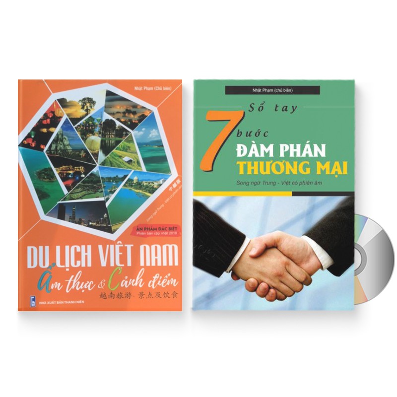 Sách – Combo 2 sách: Sổ tay 7 Bước đàm phán thương mại + Du lịch Việt Nam – Ẩm thực & Cảnh điểm + DVD quà tặng Giới thiệu sách: Du lịch Việt Nam – Ẩm thực và cảnh điểm (in màu, có audio nghe, giấy ảnh c2) + DVD quà tặng Nội dung sách: Tổng hợp theo định hướng cung cấp các kiến thức cũng như thông tin liên quan đến các địa danh, ẩm thực tại các vùng du lịch lớn ở Việt Nam . Tác giả: Nhật Phạm Số trang: 380 Nhà xuất bản: Thanh Niên Năm xuất bản: 2019 Giá bìa: 350,000 VNĐ Giới thiệu sách: Sổ tay 7 bước đàm phán thương mại (Trung – Pinyin – Việt) Nội dung sách: Là sự đúc kết thực tiễn kinh doanh với 7 bước đàm phán thường gặp trong các thương vụ làm ăn , 7 bước là 7 đoạn hội thoại với nội dung chuyên dụng cho đàm phán. Tác giả: Nhật Phạm Số trang: 150 Năm xuất bản: 10/2018 Nhà xuất bản: Hồng Đức Giá bìa: 129,000 VNĐ Nội dung 10Gb quà tặng có trong DVD và link quà tặng đây ạ: ✅ Audio và phần hướng dẫn làm bài tập 2 sách: Giáo trình tự học tiếng Trung giao + Sách bài tập thực hành của giáo trình tự học tiếng Trung giao tiếp ✅ Audio Nghe 1001 Bức Thư Viết Cho Tương Lai ✅ Audio Nghe 999 Bức Thư Viết Cho Bản Thân (2018) ✅ Audio Nghe Phát triển từ vựng tiếng Trung Ứng dụng ✅ Audio Nghe Sách Du Lịch Việt Nam – Ẩm Thực và Cảnh Điểm ✅ Audio Nghe sách Trung Quốc 247: Góc nhìn bỡ ngỡ ✅ Audio Nghe sách Trung Quốc 247: Mái nhà thân thuộc ✅ Audio nghe sách Cuộc đời phụ nữ: Muôn vàn lý do hạnh phúc ✅ Audio nghe sách 123 Thông điệp thay đổi tuổi trẻ ✅ Audio Nghe sách 101 Thông điệp thay đổi cuộc đời phụ nữ ✅ Audio sách Luyện dịch ✅ FILE AUDIO CUỐN TỪ ĐIỂN HSK GIAO TIẾP TẬP 1-2-3 ✅Tài liệu dành cho người mới bắt đầu học tiếng Trung ✅ Từ vựng tiếng Trung theo chủ đề ✅ Giáo trình luyện thi HSK từ sơ cấp đến cao cấp ✅ Giáo trình ngữ pháp tiếng Trung ✅ Bộ giáo trình Hán ngữ 6 quyển (kèm file nghe) ✅ Bộ giáo trình Boya 9 quyển (kèm file nghe) ✅ Tài liệu học giao tiếp tiếng Trung theo tình huống ✅ Giáo trình 301 câu đàm thoại tiếng Trung ✅ Từ vựng HSK 1-6 ✅ Từ vựng Anh – Trung ✅ Bộ đề thi HSK 1-6 ✅ Giáo án BOYA1-HSK3 độc quyền!!!!! ✅ Giáo trình dạy tiếng Việt cho người Trung Quốc ✅ Kho sách về du lịch Trung Quốc ✅ Các quà tặng khác Updating liên tục