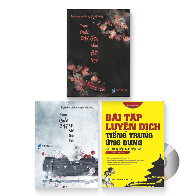 Sách – Combo: Trung Quốc 247 Mái Nhà + Trung Quốc 247 Góc Nhìn + Bài tập luyện dịch tiếng Trung + DVD nghe Trung Quốc 247 – Góc nhìn Bỡ Ngỡ Nội dung sách: Các bài viết về con người, văn hoá Trung Hoa Tác giả: Nguyễn Việt Dũng Số trang: 350 Ngày xuất bản: 2018 Nhà Xuất Bản: Dân Trí Giá bìa: 350,000 VNĐ Trung Quốc 247 – Mái nhà thân thuộc Nội dung sách: Gồm các bài viết về con người, văn hoá Trung Hoa Tác giả: Nguyễn Việt Dũng Số trang: 350 Ngày xuất bản: 2018 Nhà Xuất Bản: Dân Trí Giá bìa: 350,000 VNĐ Bài tập luyện dịch tiếng Trung Ứng Dụng Nội dung sách: Các bài viết hỗ trợ luyện dịch tiếng Trung Tác giả: Nhật Phạm Số trang: 350 Ngày xuất bản: 01/11/2017 Nhà Xuất Bản: Hồng Đức