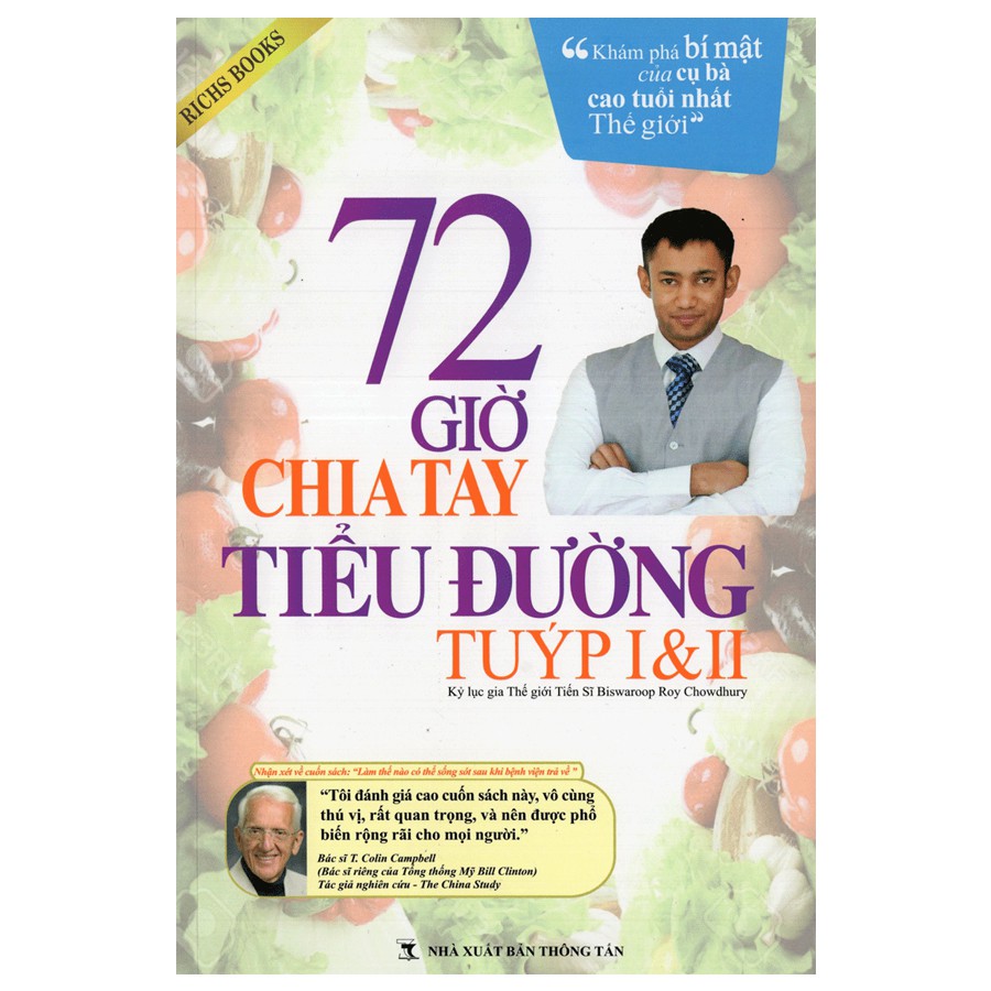 Sách – 72 giờ chia tay tiểu đường tuýp I&II Tác giả: T.s Biswaroop Roy Chowdhury Công ty phát hành: Bimemo Nhà xuất bản: NXB Thông Tấn Số trang: 140 Loại bìa: Bìa mềm Nội dung: 72 giờ chia tay tiểu đường nói rõ hơn về những gì nền y học hiện đại không đề cập tới trong điều trị bệnh tiểu Đường. Đó cũng chính là nỗ lực để giải thích rằng bệnh Tiểu Đường chỉ là một phần của sự rối loạn nội tiết bên trong cơ thể nhưng chủ yếu là căn bệnh mang tính thời sự , cuối cùng trang bị cho độc giải một phương pháp đơn giản có thể giúp mỗi cá nhân tự chữa trị cho chính mình theo phương pháp loại bỏ 3D (Diabetes-Drugs-Doctors: Tiểu đường-thuốc-bác sĩ) đồng thời tiết kiệm được gánh nặng khổng lồ của nền kinh tế quốc gia. Cuốn sách có 9 chương bao gồm: Chương 1: Dành tặng cho người Việt Nam Chương 2: Bệnh Tiểu Đường – một bệnh lý mang tính thời sự Chương 3: Cách hiểu thông thường về bệnh Tiểu Đường Chương 4: Phía sau những tính toán khoa học Chương 5: Sự thật có thể chữa khỏi bệnh Chương 6: Có thể chữa khỏi Tiểu Đường tuýp II Chương 7: Chia tay Tiểu Đường tuýp I Chương 8: Chế độ ăn có thể chữa khỏi tiểu đường tuýp I & II Chương 9: Bài học từ cụ bà sống lâu năm nhất Thế Giới Sách: Cuộc Chiến Vì Sức Khỏe – Hành Động Và Thành Công Tác giả: Dr.Biswaroop Roy Chowdhury, Nguyễn Hoàng Anh Công ty phát hành: Biemo Nhà xuất bản: NXB Thông Tấn Năm phát hành: 2017 Số trang: 241 Loại bìa: Bìa mềm Bên cạnh những thông tin thú vị về kiến thức chuyên ngành, quyển sách này còn tập hợp những câu chuyện của các học viên Bimemo. Họ là những người đã từng trải qua nỗi đau đớn khi bệnh tật dày vò, và chính họ là những con người đã nở nụ cười hạnh phúc khi chiến thắng được bệnh tật và sống vui, sống khỏe. Những câu chuyện của họ cũng là lời chứng thực cho tính hiệu quả của phương pháp Bimemo và giá trị của sức khỏe tự nhiên. Đặc biệt, sách giới thiệu lại câu chuyện của cựu Tổng thống Mỹ Bill Clinton, người đã may mắn khám phá ra liệu pháp chữa trị không dùng thuốc vào đúng thời điểm, và đã hồi phục sau khi phải chiến đấu với bệnh tật, với các mảng xơ vữa trong động mạch, với nhiều cuộc phẫu thuật lớn. Ngoài ra, sách cũng nói thêm về việc ngành công nghiệp điều trị ung thư đã ảnh hưởng đến tình trạng sức khỏe của huyền thoại Steve Jobs – người khai sáng ra thương hiệu toàn cầu Apple – như thế nào. Sách – Chăm sóc sức khỏe không dùng thuốc Tác giả: Dr.Biswaroop Roy Chowdhury Công ty phát hành: Biemo Nhà xuất bản: NXB Thông Tấn Năm phát hành: 2017 Số trang: 337 Loại bìa: Bìa mềm Áp lực cuộc sống hiện đại đã làm chúng ta quên mất một tài sản vô giá đó là “sức khỏe”. Các căn bệnh do lối sống gây ra ngày càng tăng với tốc độ khủng khiếp. Trong buổi hội thảo “Bệnh đái tháo đường trong mối quan tâm về y tế toàn cầu” do Bộ Y tế tổ chức đã báo cáo “Việt Nam là quốc gia có tỷ lệ tăng bệnh nhân đái tháo đường cao nhất Thế giới, khoảng 5 triệu bệnh nhân. Việt Nam cũng là một trong những nước có tỷ lệ tử vong do ung thư cao nhất Thế giới. Và còn rất nhiều “sát thủ” thầm lặng như bệnh tim mạch, cao huyết áp, béo phì,… Tất cả đều tạo nên gánh nặng chi phí y tế cho từng gia đình và toàn xã hội. Vậy làm saogiảm thiểu được bệnh tật để hướng đến một cuộc sống khỏe mạnh, hạnh phúc? Với ngôn ngữ giản dị, dí dỏm, dễ hiểu, 30 chương của quyển sách “Chăm Sóc Sức Khỏe Không Dùng Thuốc”của Tiến sĩ Biswaroop sẽ giúp bạn trở thành chuyên gia sức khỏe của chính mình, hiểu lý do vấn đề đang gặp phải, biết cách đưa ra những “phương thuốc” toàn diện trong ngắn hạn lẫn dài hạn giúp bạn cân bằng được công việc, cuộc sống và sức khỏe. Sau khi đọc xong cuốn sách này và thử áp dụng cho chính bản thân mình bạn sẽ thấy những kết quả tuyệt vời. Thiên nhiên xung quanh ta rất kỳ diệu, chỉ khi nào bạn quyết định khám phá nó thì sức mạnh đó mới thật sự giúp ích cho bạn. Cuốn sách Chăm Sóc Sức Khỏe Không Dùng Thuốc này dành cho những ai khao khát muốn có một cuộc sống khỏe mạnh hạnh phúc và trường thọ. Hãy dành thời gian để đọc và trải nghiệm.