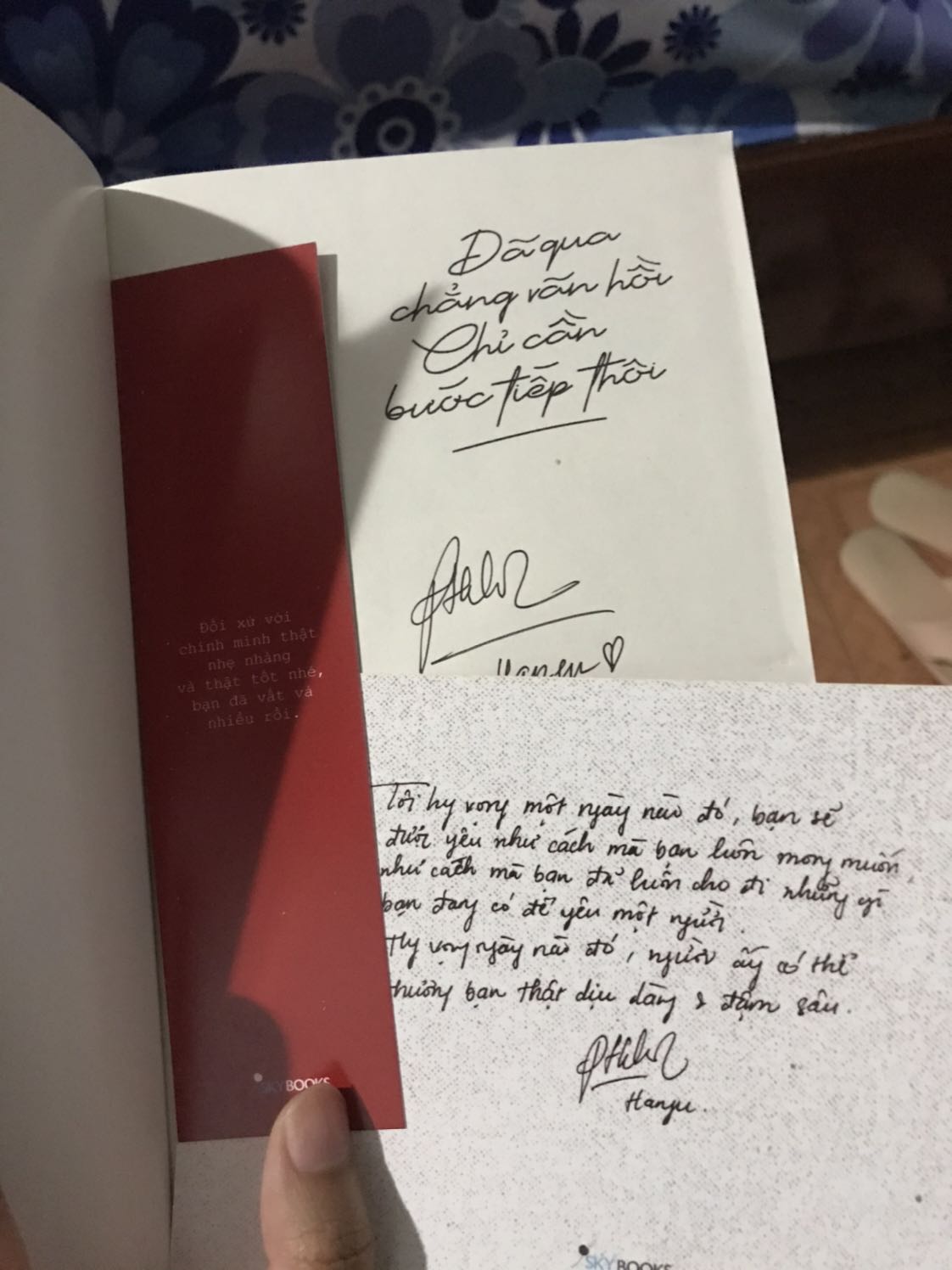 Đâu đó giữa những bộn bề và hối hả, vội vã của cuộc sống vẫn sẽ có vài khoảnh khắc chúng ta muốn chậm lại, cho bản thân một quãng nghỉ để tạm quên đi những mệt mỏi, áp lực, để hồi tưởng, nhớ về những kỉ niệm đã qua, về một thời ta từng non trẻ, dại khờ và ngây thơ, chưa từng biết muộn phiền và trăn trở về thời gian, cuộc sống. Và “Đã qua chẳng vãn hồi chỉ cần bước tiếp thôi” – cuốn sách mới của Hanfu đã viết cho những ngày như thế, những ngày người ta chẳng rõ cảm xúc của chính mình, những ngày ngẩn ngơ và hoang mang trước những đổi thay từng chút một của cuộc đời, những ngày cần cho mình khoảng lặng, cần thêm dũng khí để mạnh mẽ hướng về tương lai – nơi vẫn còn rất nhiều điều đáng để chờ mong. “Đã qua chẳng vãn hồi chỉ cần bước tiếp thôi” – với 5 chủ đề: Self help (bạn có thể cần đến nó), beloved (bạn sẽ yêu nó vì thấy câu chuyện của bất cứ ai đó giống mình), note to self (và cả những điều bạn nghĩ mình nên thay đổi) you will be fine (rồi bạn sẽ ổn thôi và bước tiếp thay vì ngoái đầu nhìn quá khứ), sau cùng là From Hanfu – mong bạn sẽ luôn hạnh phúc kiên trì bước tiếp vì con đường mình đang đi. Mong bạn hiểu rằng cho dù từng vấp ngã, cho dù từng sai lầm tiếp nối sai lầm, bạn vẫn có con đường cần phải đi. Đừng sợ hãi, hiện tại là điều bạn sẽ phải bước qua nếu muốn tương lai là hạnh phúc. Cũng đừng đợi đến khi quá muộn mới trân trọng thời gian bạn có và trân trọng những những yêu thương bạn bởi năm tháng tưởng dài nhưng cũng sẽ trôi qua chỉ trong một lần chớp mắt mà thôi. “Đã qua chẳng vãn hồi chỉ cần bước tiếp thôi” – có một món quà ấm áp đầu xuân Skybooks gửi đến bạn như thế, cùng bạn gói ghém những nuối tiếc ở một góc nào đó trong lòng, như một hành trang để bạn vững vàng trưởng thành…Để bạn cũng có thể nhớ về một khoảng thời gian tươi đẹp đã qua, khiến bạn mỉm cười để rồi sau đó lại có thể tiếp tục cuộc hành trình mà mình đang hướng tới thật nhẹ nhàng,bình yên. Bởi ai rồi cũng cần phải bước tiếp, còn những chuyện của quá khứ chúng ta hãy nhớ để mỉm cười, để thêm mạnh mẽ và kiên cường chứ không phải để nuối tiếc mà day dứt tổn thương. Nhớ nhé!