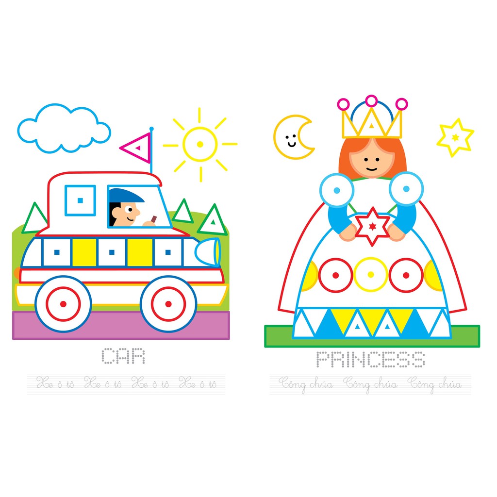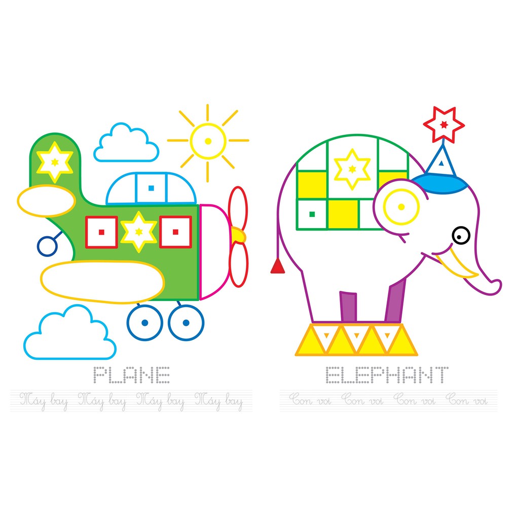 Công ty phát hành: Đông A Nhà xuất bản: Dân Trí Tác giả: Jordi Busquets Năm xuất bản: 2010 Số trang: 16 Kích thước: 20,5cm x 27,5cm Nội dung sách: Tiếp theo bộ sách chơi mà học đầy lí thú Dán hình sáng tạo, họa sĩ Jordi Busquets sẽ tiếp tục mang đến cho các độc giả nhí Việt Nam hai tập sách hết sức ngộ nghĩnh giúp trẻ rèn luyện và phát triển tư duy tốt hơn mang tên Dán hình, tô màu và tập viết. Với hơn 100 hình dán ngộ nghĩnh nhiều màu sắc, bộ sách này sẽ giúp bé tập nhận biết màu sắc, hình khối, sự vật bằng cách tìm những hình dán phù hợp ở ô giữa sách để dán vào mỗi bức tranh ở từng trang rồi dùng bút màu tô lên những chỗ còn trống theo màu của những đường viền ở đó. Tiếp đó, trẻ còn được tập viết bằng cách dùng bút chì nối các chấm bên dưới mỗi hình vẽ lại với nhau để làm rõ tên tiếng Anh của bức tranh và tập viết tên tiếng Việt theo mẫu cho sẵn. Ở bộ sách này ba mẹ cũng nên tham gia cùng trẻ, để trẻ thêm tự tin, hứng thú và sáng tạo tốt hơn. Đừng quên động viên, khuyến khích trẻ sau mỗi bức tranh đã hoàn thành, ba mẹ nhé! Tin rằng trẻ sẽ có những bức tranh hoàn chỉnh thật đẹp của riêng mình. Bộ sách gồm 2 quyển: Quyển 1 và quyển 2