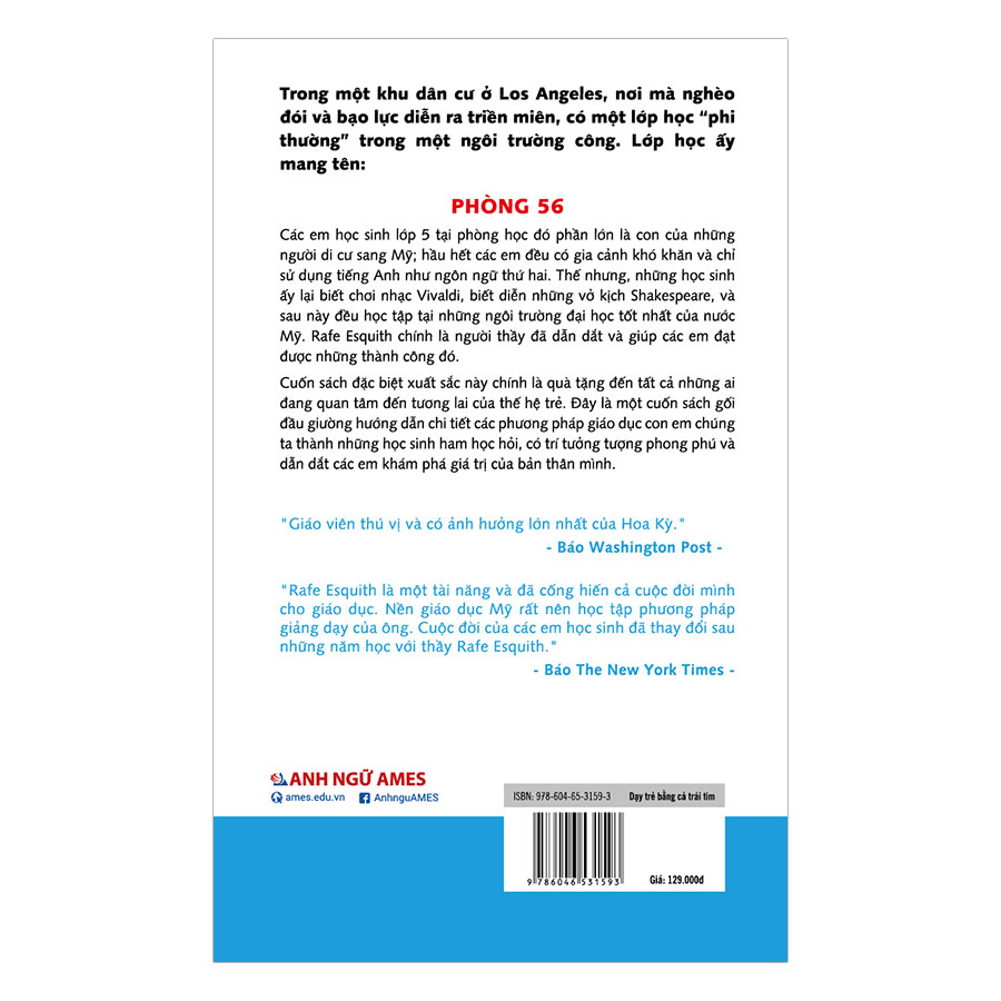 Dạy Trẻ Bằng Cả Trái Tim là món quà ý nghĩa dành cho tất cả những ai đang quan tâm đến tương lai của thế hệ trẻ. Đây là một cuốn sách gối đầu giường hướng dẫn chi tiết các phương pháp giáo dục con em chúng ta thành những học sinh ham học hỏi, có trí tưởng tượng phong phú và dẫn dắt các em khám phá giá trị của bản thân mình. Căn phòng 56 thuộc ngôi trường công giữa thành phố Los Angeles là nơi học tập của các em học sinh lớp 5, hầu hết các em đến từ các gia đình nhập cư, nghèo khó, tương lai dường như đã được định đoạt. Thế nhưng, những học sinh ấy lại biết chơi nhạc Vivaldi, biết diễn những vở kịch Shakespeare, và sau này đều học tập tại những ngôi trường đại học tốt nhất của nước Mỹ. Rafe Esquith chính là người thầy đã dẫn dắt và giúp các em đạt được những thành công đó. Với tâm huyết của một người thầy, một người cha Rafe Esquith đã biến căn phòng trở thành “thiên đường an toàn, che chở lũ trẻ trước bão giông”, nơi không chất chứa sự sợ hãi mà đầy ắp niềm vui, sự hào hứng mỗi khi tới lớp. “Công cụ” thầy Rafe sử dụng chính là các phương pháp tạo sự tin tưởng, khơi dậy niềm đam mê học tập và giúp các em xây dựng sự tự tin ở chính bản thân. Trong cuốn sách của mình, tác giả giới thiệu với bạn đọc về “6 cấp độ phát triển của một học sinh” đó là: Cấp độ 1: Học để không bị phạt Cấp độ 2: Học để được thưởng Cấp độ 3: Học để ai đó (bố mẹ, thầy cô) hài lòng Cấp độ 4: Học để biết tuân thủ đúng quy định/nội quy Cấp độ 5: Học để biết cảm thông và cư xử đúng đắn Cấp độ 6: Học để hình thành cho bản thân những quan điểm riêng một cách đúng đắn và quyết tâm thực hiện những mục tiêu đã đặt ra. Đây chính là tư tưởng của những người sáng tạo, những nhà lãnh đạo tương lai. Hiện nay, hầu hết các lớp học đều tồn tại một sự sợ hãi vô hình: các em học sinh sợ thầy cô, làm tất cả mọi việc chỉ để tránh rắc rối. Với phương pháp và niềm tin của mình, thầy Rafe đã biến phòng 56 trở thành 1 lớp học lý tưởng cho các thầy cô giáo khác, mà không cần dùng đến dọa nạt hay tạo không khí sợ hãi. Thầy đã luôn tuân thủ bài học về sự tin tưởng. Bí kíp có được niềm tin của học sinh đó chính là: (1) Trở thành người đáng tin cậy (2) luôn giữ lời hứa (khi đã hứa thì bạn phải làm bất cứ điều gì để thực hiện lời hứa đó); và (3) luôn kiên nhẫn trả lời tất cả các câu hỏi của các em (dù các em có thể đã hỏi đúng câu hỏi đó hàng trăm lần). Các biện pháp kỷ luật phải hợp lý và thầy luôn phải là tấm gương tốt cho các em. Ngoài ra, trong cuốn sách, thầy Rafe còn đề cập tới một vấn đề luôn khiến các bậc phụ huynh đau đầu, đó là trẻ không thích đọc, luôn bị ép đọc. Bằng kinh nghiệm và phương pháp của mình, thầy đã giúp các em học sinh yêu thích những cuốn sách một cách tự nhiên, và biết nuôi dưỡng sở thích này. Thầy tin rằng các em muốn học, muốn đọc sách vì các em thực sự mong muốn như vậy. Nếu được khuyến khích và hướng dẫn với những phương pháp đúng đắn, các em học sinh đó sẽ trở thành những người chăm đọc sách và trở thành những người đọc sách trọn đời. Cuốn sách còn là lời động viên, tiếp thêm nghị lực trong cuộc sống cho mỗi cá nhân. Trong một thế giới chứa đầy tội lỗi như hiện nay, nơi các giá trị đạo đức bị chà đạp, con người thường hoang mang và dễ dàng gục ngã trước những cám dỗ của cuộc sống, những câu chuyện của thầy Rafe ở phòng 56 chắc chắn sẽ tiếp thêm sức mạnh giúp bạn vững bước tiếp tục với niềm tin và một hi vọng về một thế giới tốt đẹp hơn. Như thầy Rafe đã nói: “Thử thách lớn nhất mà tôi phải đối mặt đó là dạy học sinh của mình sống ngay thẳng trong một thế giới chẳng mấy tốt đẹp gì. Tôi muốn các em trở thành người tốt cho dù phải lớn lên trong một môi trường không tử tế, nơi mà ngay cả phương tiện truyền thông cũng cổ xúy cho những thói hư tật xấu.” Bên cạnh đó, bạn đọc sẽ dễ dàng bắt gặp những câu chuyện ấm áp về tình thầy trò, người với người giữa thành phố Los Angeles đầy biến động. Từ căn phòng 56, nơi những đứa trẻ nghèo học tập, dưới bàn tay dạy dỗ của thầy Rafe đều đã lớn lên và trở thành những con người mạnh mẽ, đầy tự tin và có ích cho xã hội đúng như mong ước của thầy. Với văn phong gần gũi, tự nhiên, nghiêm túc và pha chút hóm hỉnh chắc chắn “Dạy trẻ bằng cả trái tim” sẽ là ly cà phê ấm áp sau những ngày bận rộn của bạn.