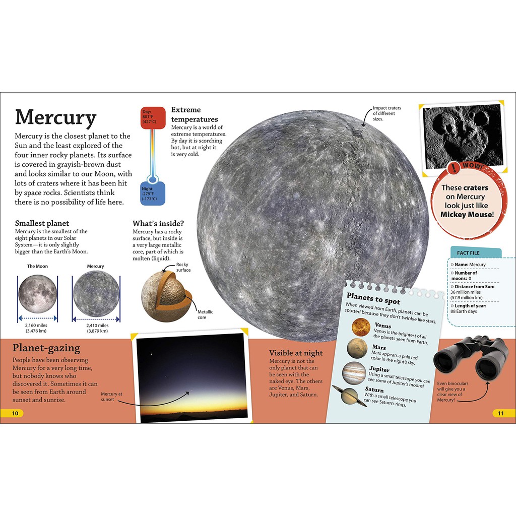 1. Nội dung Sách – DK Findout Solar System DK FINDOUT! SOLAR SYSTEM nằm trong series sách Findout của nhà xuất bản uy tính DK, đạt giải thưởng MadeForMums năm 2017, hạng mục sách thiếu nhi DK FINDOUT! SOLAR SYSTEM có rất nhiều thông tin bổ ích dành cho các bạn nhỏ, từ các câu đố, hình ảnh minh họa và sự thật thú vị Cuốn sách này là người bạn thiết thân với các bé, khám phá hệ Mặt Trời kì diệu, từ các Hành Tinh cho đến thiên thạch, và cả các vì sao cùng dải Ngân Hà – Hệ Mặt Trời và tám hành tinh trong đó cấu tạo ra sao? – Dải Ngân hà và lỗ đen Vũ trụ? – Núi lửa và cấu trúc địa hình ở Sao Kim và Sao Thủy… 2. Thông tin Sách – DK Findout Solar System SBN-10: 9780241225202 ISBN-13: 978-0241225202 ASIN: 0241225205 Product Dimensions: 175.26 x 10.16 x 238.76 mm Nhà xuất bản DK Năm xuất bản 2018 bản mềm Độ tuổi: 9+