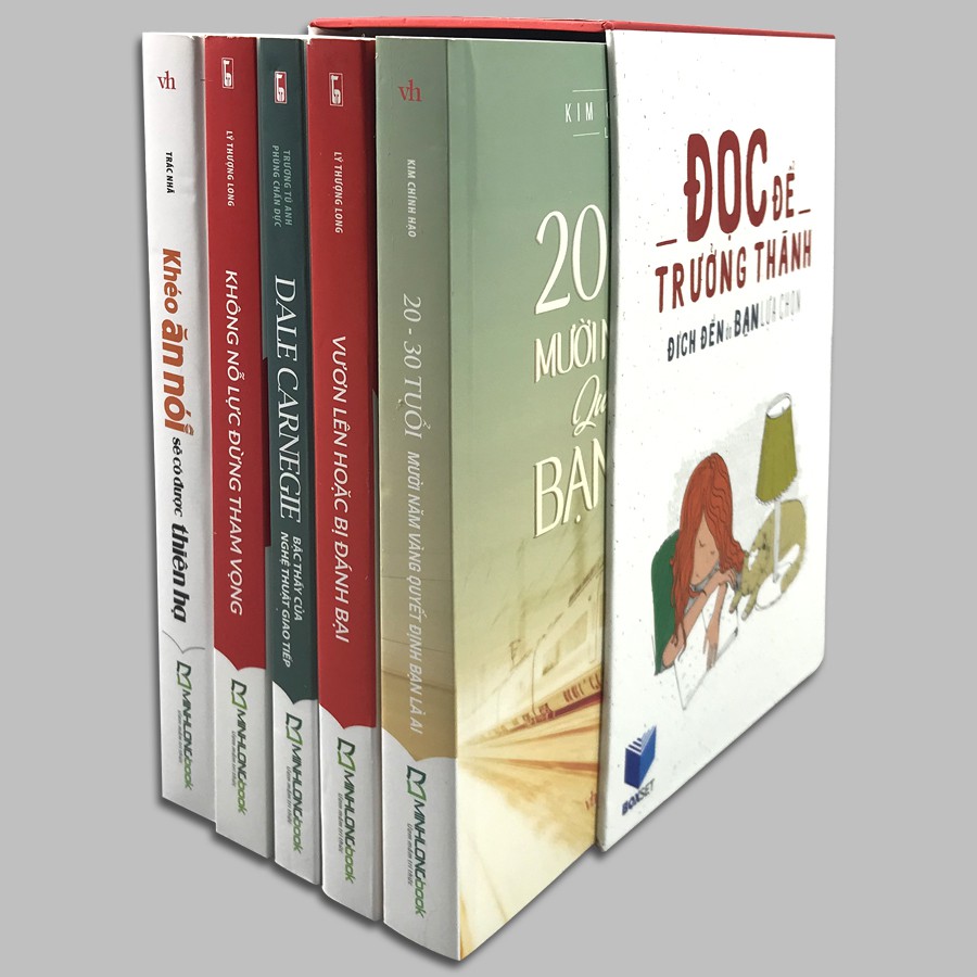 Đọc Để Trưởng Thành – Đích Đến Do Bạn Lựa Chọn – Tặng Sổ Tay (Hộp 5 quyển) Thử thách lớn nhất của những “cơ thể lớn” là làm thế nào để trưởng thành. Theo thời gian, chúng ta dần có ngoại hình của một người lớn. Nhưng trong thâm tâm, chúng ta vẫn thật hoang mang. Chúng ra không biết phải làm sao để giao tiếp khôn ngoan, làm sao để nỗ lực vươn lên, làm sao để sống hạnh phúc…, làm sao để thật sự là một người trưởng thành trong cả cảm xúc, nhận thức lẫn hành động. Hãy đọc sách! Giống như thức ăn đã nuôi chúng ta lớn, sách cũng là một loại thức ăn đặc biệt nuôi chúng ta trưởng thành . Bạn sẽ tìm thấy trong bộ sách này câu trả lời cho những điều khiến bạn hoang mang, bởi mỗi cuốn sách là sự kết tinh tri thức và trải nghiệm của những người đã vượt qua khó khăn, thử thách để thực sự trưởng thành. Và họ không chỉ trưởng thành, họ còn rất thành công. Không khó để những “cơ thể lớn” trưởng thành, miễn là bạn có sẵn lòng làm mọt sách, biến sách thành thức ăn thường ngày của bạn hay không mà thôi. Hộp sách gồm 5 cuốn: + Dale Carnegie – Bậc thầy của nghệ thuật giao tiếp + Kim Chỉ Nam Dành Cho Bạn Trẻ – Không Nỗ Lực Đừng Tham Vọng + Khéo ăn nói sẽ có được thiên hạ + Vươn lên hoặc bị đánh bại + 20 – 30 Tuổi: Mười Năm Vàng Quyết Định Bạn Là Ai ———- Công ty phát hành MinhLongbook Tác giả Nhiều tác giả Ngày xuất bản 12-2019 Kích thước 14.5 x 20.5 cm Nhà xuất bản Nhà Xuất Bản Thanh Niên Loại bìa Bìa mềm Số trang 356+276+404+352+408 ——–++——- #sách, #tuổitrẻđánggiábaonhiêu, #hànhtrìnhvềphươngđông, #vãntình, #đừnglựachọnannhànkhicòntrẻ, #tôiquyếtđịnhsốngchochínhtoi, #sáchhay, #nhàsáchonline