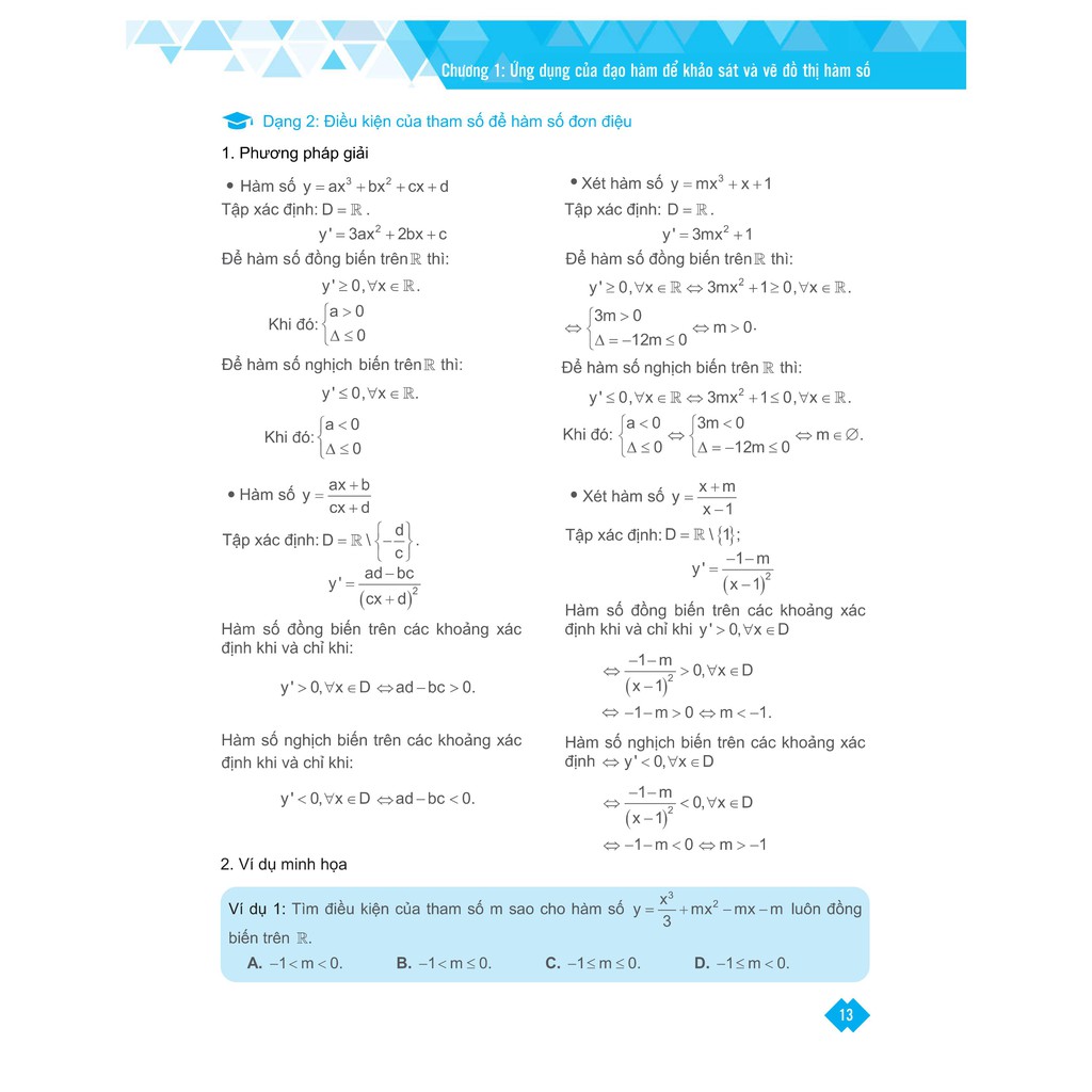 Nội dung của sách: Phạm vi kiến thức: Bao gồm 3 lớp 10, 11, 12 Các kiến thức được viết theo chương/ chuyên đề. Lí thuyết trọng tâm: được trình bày chi tiết, đầy đủ các kiến thức có liên quan. Song song với mỗi phần lí thuyết đó có một ví dụ mẫu để làm rõ vấn đề. Các dạng bài tập: chia thành các dạng bài tập nhỏ, sau đó có phương pháp giải chi tiết kèm theo các ví dụ minh họa và phân tích ví dụ theo lối tư duy ngược để rèn tư duy logic cho học sinh. Sau mỗi ví dụ minh họa là các lưu ý cho học sinh khi giải bài tập ở dạng đó. Ngoài ra, các em học sinh còn được làm thêm các bài tập tự luyện ngay sau đó kèm lời giải chi tiết trong hệ thống Test. Bài tập tổng hợp: đưa ra các bài tập của cả chương/ chuyên đề đó dưới hình thức các câu hỏi trắc nghiệm và bảng đáp án ở cuối cho học sinh kiểm tra sau khi làm bài xong có gợi ý giải cho các câu hỏi khó. Lời giải chi tiết của các bài tập được cho trong hệ thống Test. Các bài tập và ví dụ minh họa đầy đủ các dạng từ cơ bản – vận dụng – vận dụng cao, nhưng chủ yếu vẫn phân bổ nhiều ở mức vận dụng, vận dụng cao. Kiến thức lớp 12 được trình bày chi tiết, tỉ mỉ về các dạng bài và ví dụ minh họa. Lớp 10 và lớp 11 trình bày cô đọng những kiến thức trọng tâm. Ưu điểm nổi bật của sách: Lý thuyết được trình bày rõ ràng, có ví dụ mẫu song song để mô tả. Trong mục “Ví dụ minh họa” có đưa ra nhận xét tâm huyết PDF EPUB PRC AZW miễn phí đọc trên điện thoại – máy tính, ứng dụng đọc file epub, prc reader, azw reader của tác giả về dạng toán và chú ý cho học sinh. Công ty phát hành: CCBook Nhà xuất bản: NXB Đại học Quốc gia Hà Nội Tác giả: Nhiều tác giả Năm phát hành: 2019 Số trang: 448 Tiện ích kèm sách: * Hệ thống video bài giảng hỗ trợ sách do chính các thầy cô giáo biên soạn sách thực hiện giảng dạy. * Gia sư Online hỗ trợ giải đáp tất cả những thắc mắc mà các em gặp phải trong quá trình tự học. Mỗi bài tập tự luyện và bài tập tổng hợp đều tích hợp mã ID để truy cập hệ thống Test – xem lời giải chi tiết và phân tích các đáp án gây nhiễu, làm các đề thi thử theo chuẩn cấu trúc của Bộ. Mỗi cuốn sách còn kèm theo VIDEO bài giảng nhằm giải đáp những vấn đề mà các em học sinh thường vướng mắc. Sách có đi kèm nhóm hỗ trợ học tập trên Facebook 24/24 giúp việc giải đáp học tập giữa giáo viên và học sinh dễ dàng mọi lúc, mọi nơi. Đối tượng sử dụng sách: Học sinh bắt đầu học chương trình lớp 12 có lực học từ trung bình – khá trở lên: dùng làm tài liệu học và ôn thi. Giáo viên chuyên môn và các bạn gia sư dùng làm tài liệu tham khảo trong quá trình giảng dạy. Bạn sẽ đạt được những gì sau khi sử dụng sách: Giúp học sinh làm quen và luyện kiến thức cơ bản lớp 12 một cách chi tiết. Dùng cho học sinh lớp 10, 11 ôn tập kiến thức để chuẩn bị cho các kì thi. Nhắc lại các kiến thức quan trọng của lớp 10 và 11. Luyện thành thạo các dạng bài tập thường gặp trong đề thi THPTQG cả lớp 10, 11 và 12. Phục vụ cho học sinh ôn thi THPTQG, Cao đẳng, Đại học. Học sinh sẽ thi đạt từ 8 điểm môn Đại số trở nên nếu khai thác và học hiệu quả cuốn sách này