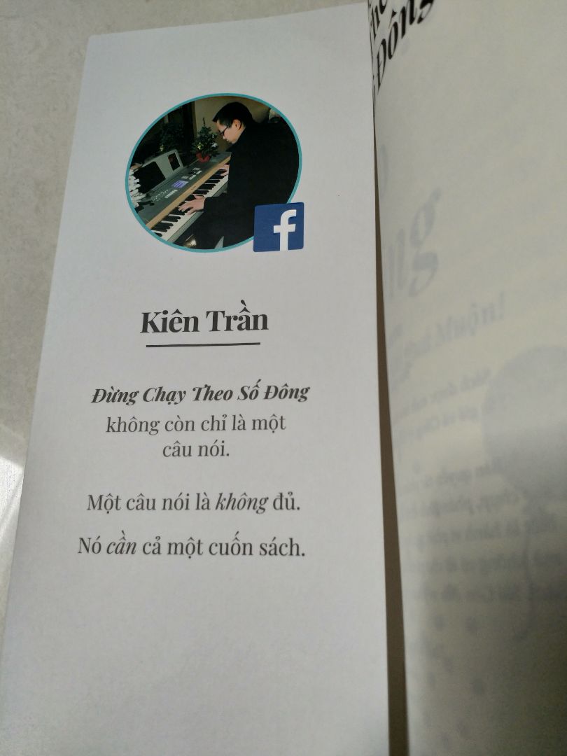 Nếu tất cả mọi người ai cũng làm chủ doanh nghiệp, thì ai sẽ đi làm thuê? Tôi. Bởi lúc đó họ sẽ phải đấu giá để có được tôi. Nhưng điều này không bao giờ xảy ra. Bởi ngay từ trong trứng đến lúc mọc cánh, chúng ta đã được dạy phải làm cho người khác cả đời. Chỉ có 1% được dạy khác. Bạn không chạy theo số đông. Bạn LÀ số đông. Tuy nhiên bạn đừng nhầm lẫn. Cuốn sách này không chỉ nói về vấn đề “làm thuê” hay “làm riêng”. Đây chỉ là một trong những khía cạnh rất nhỏ. Cuốn sách này muốn làm nổi bật một hệ tư duy ngầm lớn và khủng khiếp hơn thế mà chúng ta không nhận ra. Một sức hút vô hình nhưng mạnh mẽ. Chạy theo số đông. Phần lớn mục đích sống và thói quen của bạn không do bạn quyết định. Số đông quyết định hộ bạn mà bạn không nhận ra. Họ “dạy” bạn. Họ “khuyên” bạn. Những lời khuyên và răn dạy có lúc thể hiện qua lời nói và văn bản trực tiếp rõ ràng. Nhưng phần lớn nó hàm ý và không rõ ràng. Họ có thể không khuyên bạn trực tiếp. Mà đơn giản hàng triệu người làm theo một thứ hoặc đi theo một con đường nên “chắc chắn nó phải đúng”. Phải không? Nếu không đúng tại sao cả xã hội lại làm vậy? Thậm chí “cả Tây cũng làm vậy”? Bạn làm theo một cách vô thức. Có một sức hút vô hình từ xã hội, số đông khiến bạn mất kiểm soát nhưng vẫn nghĩ mình đang kiểm soát. “Nó” hút bạn theo con đường mà “nó” chọn cho bạn. “Nó” âm thầm thuyết phục bạn đó là “đam mê” thật sự của bạn. “Mục đích sống” thực sự của bạn. Hoặc nếu không, nếu bạn cưỡng lại, nghi ngờ, “nó” thuyết phục bạn hãy “kiên trì” theo nó. Hứa hẹn với bạn một tương lai tốt đẹp màu hồng vào một ngày nào đó. Không xa. Giống như sức hút của nam châm. Không màu không mùi không vị. Bạn không nhìn được nó. Không nghe thấy nó. Không ngửi thấy nó. Không sờ thấy nó. Nhưng nó hút. Và hút mạnh. Dù bạn không nhìn thấy. Số đông (quần thể) mà chúng ta đang sống là một cục nam châm khổng lồ. Có những “quy luật ngầm” chúng ta tự hiểu với nhau. Bất thành văn. Chúng ta làm theo mà không suy nghĩ. Không đánh giá. Không chút nghi ngờ. Để thành công bạn phải học thật giỏi. Tham gia các hoạt động ngoại khóa. Học hết hàng thập kỷ, càng nhiều bằng cấp chứng chỉ càng tốt, sau đó xin việc. Nếu may mắn và được ban ơn bạn sẽ có một công việc dài hạn tại một công ty lớn. Lương cao. Tết đến xuân về, họ hàng sum vầy: “Cháu làm ở đâu?”. “Cháu làm ở Vietcombank.” “Cháu làm ở CenGroup.” “Cháu học ở ĐH XYZ ABC.” Oai chứ. Nhưng một tuần có 7 ngày. Đổi 5 ngày cực nhọc để lấy lại 2 ngày cuối tuần. Bạn vẫn chấp nhận đánh đổi và tự hào. Trong suốt nhiều năm. Có điều gì đó sai sai. Cuộc đời có 80 năm (nếu may mắn). Đánh đổi 65 năm học và cày để đổi lại 10-15 năm “về hưu” vào trại dưỡng lão chơi bingo (nếu may mắn). Còn nếu không may mắn, bạn tự hỏi tiền để làm gì khi sức khỏe và đam mê không còn. Phần sau của cuốn sách mình sẽ cho bạn thấy tại sao sự tự hào (pride) về bản chất là thứ cầm tù chúng ta. Không phải thứ giải phóng như bạn vẫn nghĩ. *** Đừng chạy theo số đông không phải cuốn sách xúi bạn trở thành người kiêu ngạo cực đoan xa lánh số đông. Nó là cuốn sách nói lên sự cực đoan kiêu ngạo của số đông và phơi bày hệ thống tư duy công nghiệp (mà số đông nghĩ là hiện đại). Và biến bạn trở thành một “số ít” bình thường, hiện đại nhưng khiêm nhường. Bởi bạn nhận ra về bản chất, số đông cũng chỉ là nạn nhân. – Kiên Trần