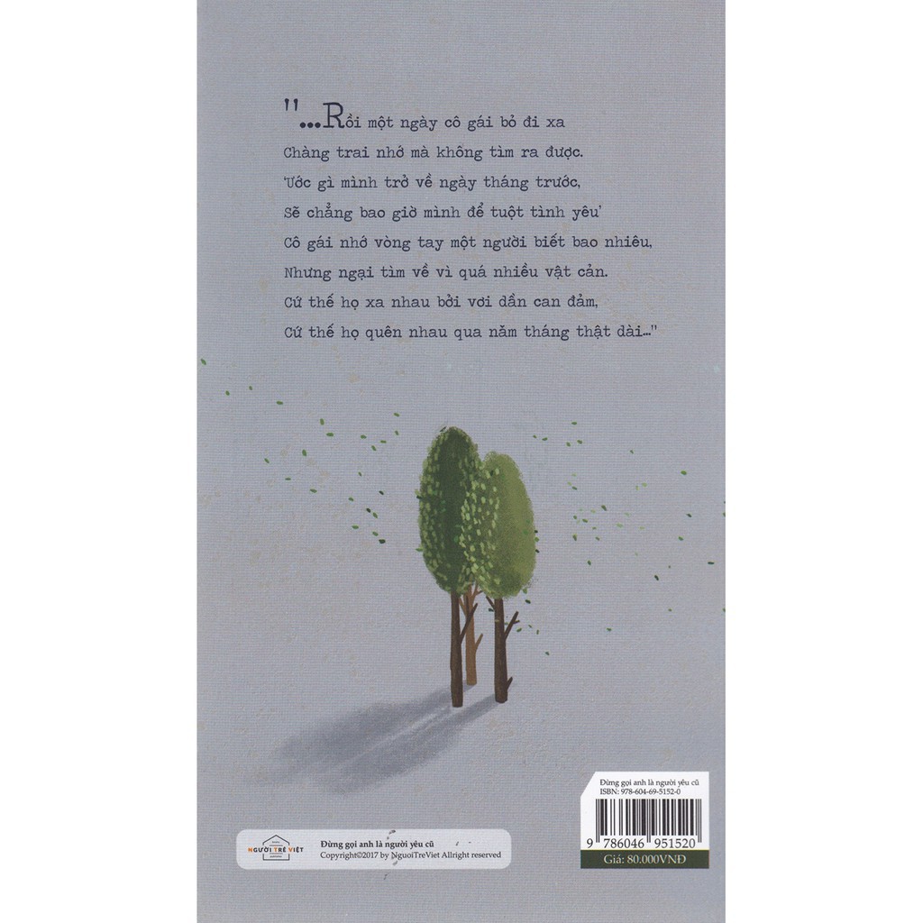 Tên Công ty phát hành Người Trẻ Việt Tác giả Du Phong Ngày xuất bản 06-2014 Kích thước: 12 x 20 cm Nhà xuất bản Văn Học Loại bìa Bìa mềm Số trang 268 GIỚI THIỆU SÁCH “Đừng gọi anh là người yêu cũ” là những dòng văn lãng mạn vương vấn chút xót xa về những mối quan hệ không tên, không ràng buộc, tưởng như một cơn gió nhẹ lướt qua cuộc đời, nhưng lại hằn sâu những nỗi niềm khắc khoải khiến người ta không thể dễ dàng quên đi được.