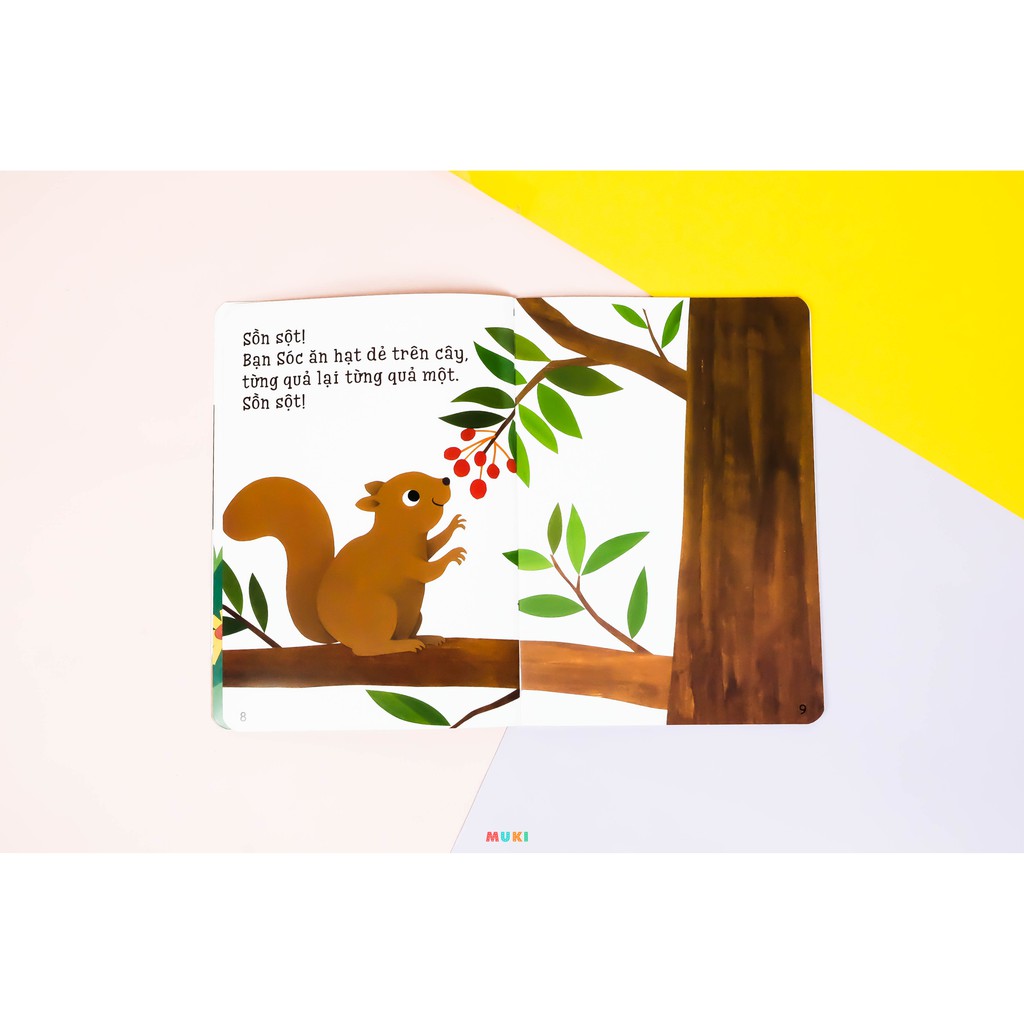 “Các bạn ơi, đến giờ ăn rồi. Nào, xin mời các bạn cùng ăn.” Đến giờ ăn, bạn Ong hút mật ngọt từ những Bông Hoa! “Chụt chụt chụt”. Để trả ơn, Ong sẽ giúp hoa chở phấn hoa đi nhé! Đến giờ ăn, bạn Sóc ăn từng hạt dẻ trên cây. Sồn sột! Để trả ơn, Sóc sẽ giúp cây gieo hạt nhé! … Tất thảy mọi điều trên thế gian này, không có điều gì là một mình tồn tại. Từng phiến lá, từng sinh vật bé nhỏ, đều sinh sôi và trưởng thành nhờ sự giúp đỡ của rất nhiều sinh vật khác. Mọi người đã được ai giúp đỡ? Mọi người đã giúp đỡ ai? Bé yêu hãy ghi nhớ luôn phải sẻ chia và giúp đỡ mọi người quanh mình bé nhé! – Độ tuổi: 0-3; 3-6 – Thể loại: Ehon Nhật Bản – Tác giả: Accototo – Khổ sách:18 x 25 cm – Số trang: 31 trang. – Loại bìa: Bìa mềm.