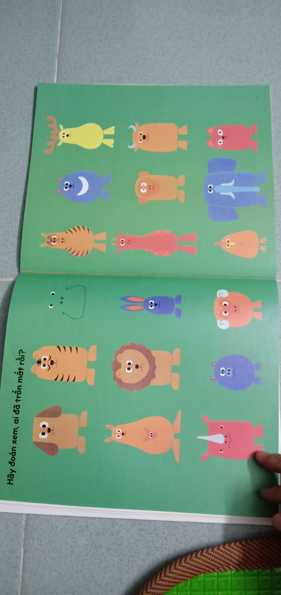 Chó, hổ, hà mã, ngựa vằn, tuần lộc, thỏ, lợn… tổng cộng có 18 con vật tươi tắn và đáng yêu trong cuốn ehon thông minh này. Cứ mỗi một trang sách sẽ có một hành động bí ẩn, con thì nấp đi, con thì quay mông lại, con thì khóc nhè, con thì ngủ gật… Bố mẹ hãy thử hỏi con, “Con đếm đi xem nào, có bao nhiêu con tất cả, ồ ai đang trốn đâu mất rồi?” Mỗi trang sách sẽ là một trò chơi hấp dẫn với trẻ tuổi mẫu giáo. Đồng thời, thời gian đọc sách sẽ giúp gắn kết bố mẹ với con, gia đình trở thành không gian chan hòa tiếng cười.