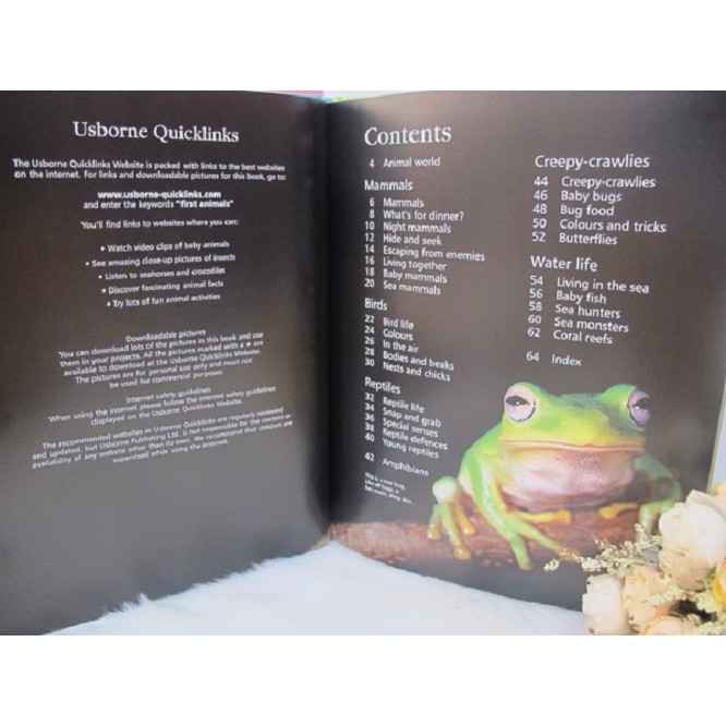 1. Nội dung Sách – First Encyclopedia Of Animals First Encyclopedia Of Animals là cuốn sách Bách Khoa tổng hợp về thế giới động vật dành cho các bé từ 9 tuổi, có kiến thức nền tảng tiếng Anh tốt. Trong cuốn sách này, các bé sẽ tìm thấy câu trả lời cho những điều thú vị như sau: – Làm thế nào cá voi có thể thở được dưới nước – Con rắn làm sao có thể nhìn thấy trong đêm tối? – Tại sao lại có giống ngựa vằn? … Các vấn đề trong sách được trình bày đơn giản, dễ hiểu, kèm theo hình ảnh minh họa thực tế. Ngoài ra sách còn có thêm nhiều gợi ý trên Internet để các bé tìm hiểu mở rộng kiến thức 2. Thông tin Sách – First Encyclopedia Of Animals Độ tuổi 9+ Sách bìa cứng ISBN: 9781409522423 Số trang 64 Kích thước: 276 x 216mm Tác giả Paul Dowswell Nhà xuất bản Usborne Năm xuất bản 2018