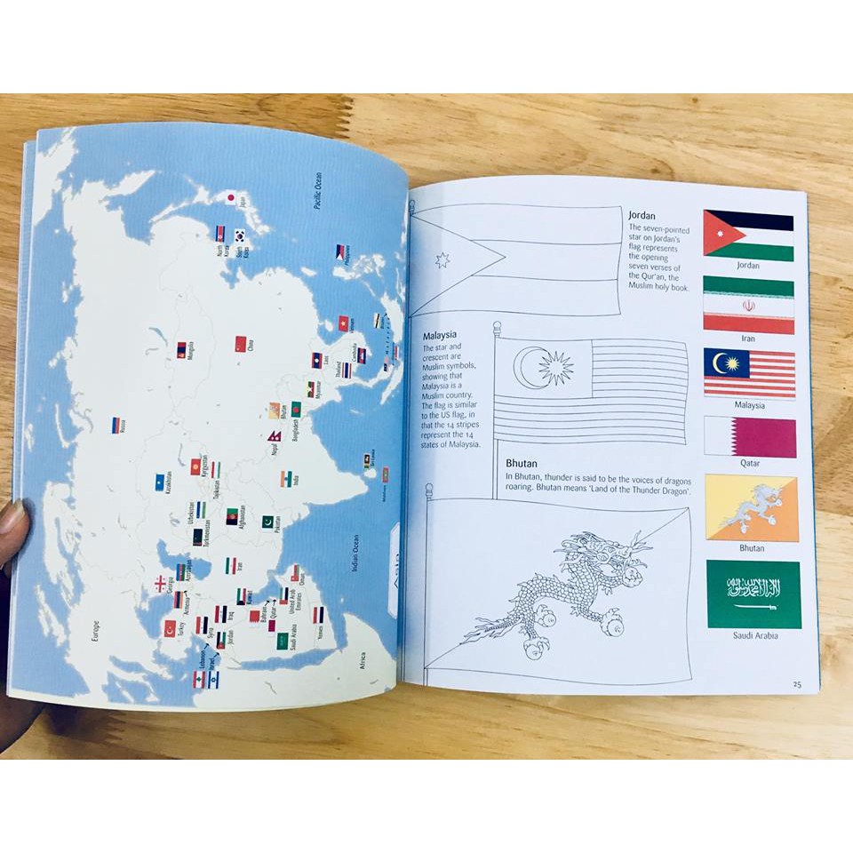 Cuốn sách tích hợp 2 trong 1 cực hữu ích =⇒ Sách hay, bổ ích, giá lại cực tốt cho các bạn nhỏ đam mê khám phá quốc kỳ các nước. ——————————— Khám phá quốc kỳ của mọi quốc gia độc lập trên thế giới trong cuốn sách tô màu hấp dẫn này. Được nhóm theo lục địa, có các bản đồ khớp với từng lá cờ với quốc gia của nó, thông tin về màu cờ và biểu tượng và cờ đen trắng và áo khoác có màu. Với các liên kết internet đến các trang web được lựa chọn cẩn thận để tìm hiểu thêm.ạ. Bìa mềm Nhà xuất bản: Usborne Publishing (28 tháng 12 năm 2017) Ngôn ngữ: tiếng anh Mã số-10: 1474941737 Sê -ri 13: 980-1474941730 Kích thước sản phẩm: 25,1 x 1,1 x 21,8 cm #sáchcờ #cờcácnước #sachchocon #khamphacacnuoc