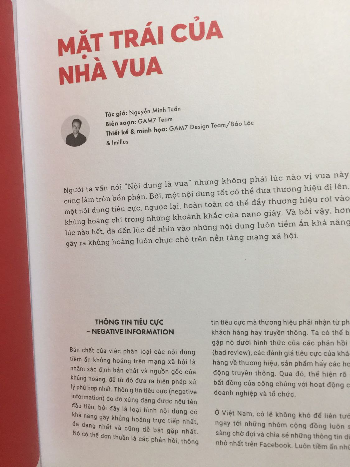 SOCIAL MEDIA CRISIS “Kiếm củi ba năm đốt một giờ” chưa bao giờ lại đúng đến thế khi nói về khủng hoảng truyền thông thời công nghệ số. Mạng xã hội vừa là cơ hội kết nối vừa là kênh phát tán khủng hoảng nhanh nhất, bởi nó cho phép sai lầm của doanh nghiệp trở nên hữu hình với công chúng. Bất cứ một thằng khờ nào trong thời đại số đều có thể trở thành tâm bão của khủng hoảng. Nhưng nhiều người vẫn đối diện với sự khó lường của khủng hoảng với thái độ bàng quan. Không ai tin mình sẽ gặp khủng hoảng cho đến khi nó ập đến và chỉ sau một đêm cướp trắng cơ nghiệp. Thứ còn lại duy nhất là nỗi niềm bải hoải trong mất mát sau nhiều năm vun đắp. Bởi vậy, những gì thương hiệu cần và có thể làm là trang bị nội lực mạnh và tâm lí đón nhận thật vững vàng, để thiệt hại là nhỏ nhất trong tình huống xấu nhất. Chuẩn bị tâm thế đối đầu và ứng biến trước khủng hoảng trên mạng xã hội là nhiệm vụ lớn nhất của GAM7 số này. THEME 1: UNDERSTAND THE ROOT CAUSES Khủng hoảng vốn có tính sát thương cao, lại có thêm cánh tay nối dài của mạng xã hội. Chính mạng xã hội đã thay đổi khách hàng và cách quản trị khách hàng trong khủng hoảng. Chương đầu tiên mở ra bối cảnh, để người đọc hiểu được tính chất khác biệt của khủng hoảng trên mạng xã hội và những kì vọng ngầm mà công chúng mong được doanh nghiệp đáp ứng một cách kịp thời. Bên cạnh đó, thực tế doanh nghiệp trong khủng hoảng cũng được khắc hoạ, để bạn đọc có cơ hội soi chiếu chính mình. THEME 2: FIGHT BACK & WIN Dù ta có chuẩn bị kĩ đến đâu, thì khi khủng hoảng xảy ra, khó khăn, hoang mang, hỗn loạn, cũng đều là những điều không thể tránh khỏi. Chương 3 sẽ cung cấp một khung định hướng chiến lược giúp doanh nghiệp tìm được lối thoát ra khỏi mớ bòng bong ban đầu, tối đa hóa hiệu quả của truyền thông và giảm thiểu thiệt hại của khủng hoảng. Các bối cảnh khủng hoảng sẽ được đem ra mổ xẻ, phân tích nhằm mang đến những góc nhìn đa chiều cho doanh nghiệp. Đây cũng là nơi mang đến những gợi ý để doanh nghiệp có thể phục hồi hoạt động sau khủng hoảng. THEME 3: ARE YOU CRISIS READY? Hiểu được những thách thức mà khủng hoảng truyền thông trên mạng xã hội đem lại cho doanh nghiệp, ta sẽ có những chiến lược cụ thể để “đón đầu” khủng hoảng một cách toàn diện và bài bản nhất. Chương 2 sẽ trang bị cho người làm truyền thông tư duy tổ chức bộ máy doanh nghiệp, từ xây dựng một “nền móng” vững chắc bên trong, đến thiết lập một hệ thống “thành lũy” kiên cố bên ngoài, để có thể “xử đẹp” những nguy cơ tiềm ẩn và phòng vệ cho doanh nghiệp đứng vững trước sóng gió khủng hoảng. Bạn đã từng: – Thể hiện quan điểm cá nhân trên mạng và bị cuốn vào những cuộc tranh cãi không cần thiết? – E ngại thể hiện quan điểm khác biệt trên các trang, nhóm cộng đồng vì sợ bị tẩy chay? – Đối diện với nguy cơ tài khoản cá nhân, bài đăng bị bay màu bởi sự phẫn nộ của cộng đồng mạng? Nếu bạn là một marketer: – Bạn cần một cuốn cẩm nang có thể giúp bạn giải quyết khẩn cấp khi thương hiệu phát sinh khủng hoảng trên MXH? – Bạn muốn tìm hiểu nguồn gốc của khủng hoảng và kỳ vọng ngầm của công chúng để tự xây dựng cho mình cách xử lý khủng hoảng truyền thông trên MXH? – Phòng bệnh hơn chữa bệnh, bạn có muốn sở hữu bí kíp phòng ngừa khủng hoảng, và giảm thiểu hậu quả một cách tối đa? Khi mạng xã hội lên ngôi, bất kỳ ai trong chúng ta đều dễ rơi vào khủng hoảng truyền thông MXH, dù là doanh nghiệp, người nổi tiếng hay cư dân mạng bình thường. Không khó để bạn hình dung những hậu quả mà bản thân hay doanh nghiệp.