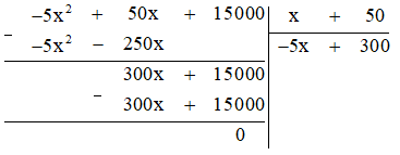 Khi đó số sản phẩm đã bán được bằng thương trong phép chia -5x2 + 50x + 15 000 cho x + 50.