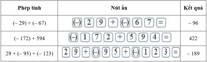 Chú ý: Ở một số máy tính cầm tay, nút dấu âm có dạng +/- .