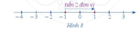 Minh hoạ trên trục số ở Hình 8: Từ điểm – 1 ta tiến sang phải 2 đơn vị đến điểm mới là 1.