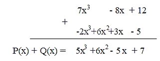 $= 7{x^3} – 8x + 12 + 6{x^2} – 2{x^3} + 3x – 5$