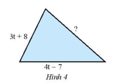 Cho tam giác (Hình 4) có chu vi bằng $12t – 3$. Tìm cạnh chưa biết của tam giác đó.
