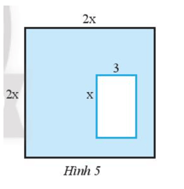 Cho hình vuông cạnh 2x và bên trong là hình chữ nhật có độ dài hai cạnh là x và 3 (Hình 5).