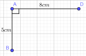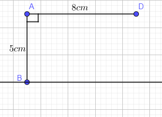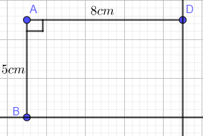 – Vẽ hai đoạn thẳng AB = 5 cm, AD = 8 cm vuông góc với nhau.