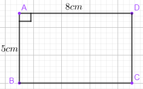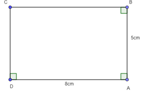 Vẽ hình chữ nhật ABCD, biết AB = 5 cm, AD = 8 cm.