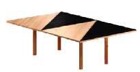 Người ta có thể thiết kế một mặt bàn hình bình hành bằng cách ghép 4 miếng gỗ hình tam giác đều lại với nhau. Để biết được cách thiết kế như thế nào, hãy cắt 4 hình tam giác đều cạnh 5 cm, rồi ghép thành một hình bình hành.