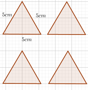 Cắt 4 hình tam giác đều cạnh 5 cm như sau: