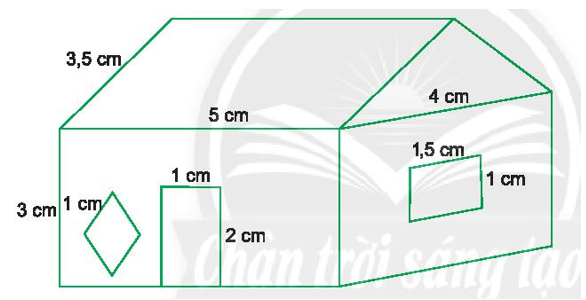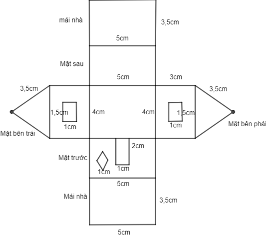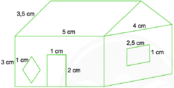 – Vẽ chiều dài 5 cm chiều rộng 4 cm của ngôi nhà trước.