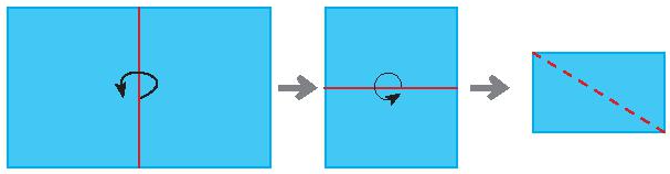 – Sau đó dùng kéo cắt theo các nếp gấp ta được 4 hình chữ nhật có cùng chiều dài và chiều rộng.
