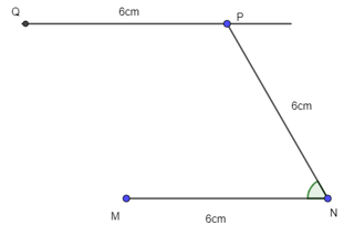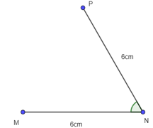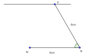 – Kẻ đoạn MN=6cm, đo góc MNP bằng 60o. Lấy điểm P trên tia còn lại của góc (không chứa điểm M) sao cho NP=6cm.