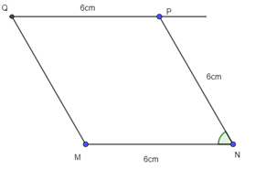 – Nối P với N và P với Q ta được hình thoi MNPQ. Các cạnh PN = QP = 4 cm.