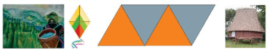 Quan sát hình dạng của bức tranh, cái diều, tấm bìa, mái nhà rông, em có biết đó là các hình gì?