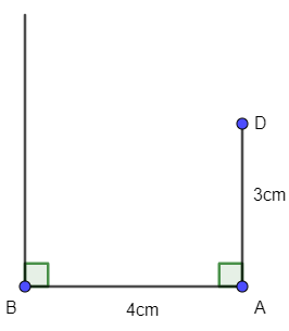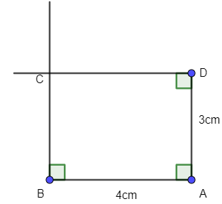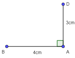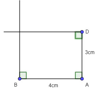 – Vẽ đoạn thẳng AB = 4 cm và đoạn thẳng AD = 3cm vuông góc với nhau.