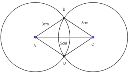 – Lấy A và C làm tâm, vẽ hai đường tròn bán kính 3 cm (hình vẽ), hai đường tròn này cắt nhau tại điểm B và D.