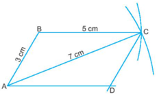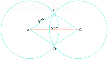 Vẽ hình thoi ABCD khi biết AB = 3 cm và đường chéo AC = 5 cm theo hướng dẫn sau: