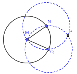 – Qua N và Q lần lượt vẽ hai đường tròn bán kính bằng 4 cm, hai đường tròn này cắt nhau tại M và P (P khác M).