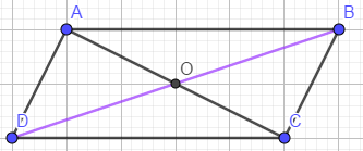Hình vừa vẽ sử dụng tính chất hai đường chéo của hình bình hành cắt nhau tại trung điểm của mỗi đường.